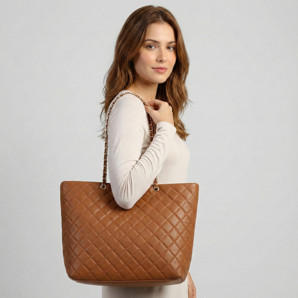 1115 Faux Leather Large Tote Bag