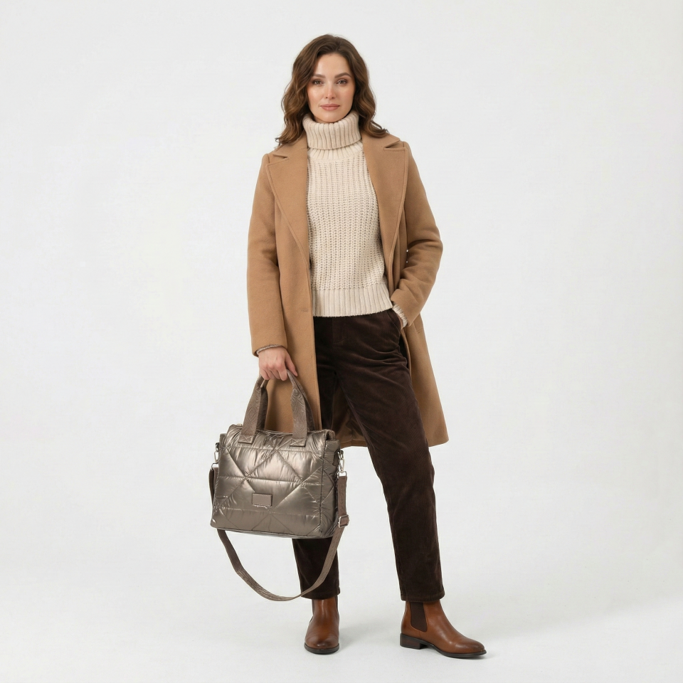 Quilted and Padded Polyamide Fabric Handbag # 24025