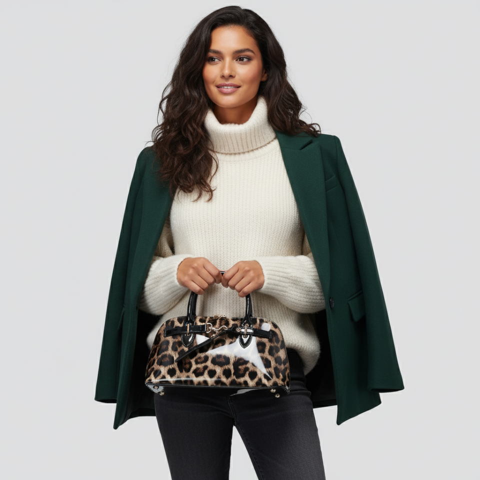 Leopard Print Patent Clutch Bag Crossbody Bag # 25462
