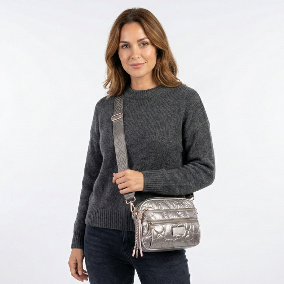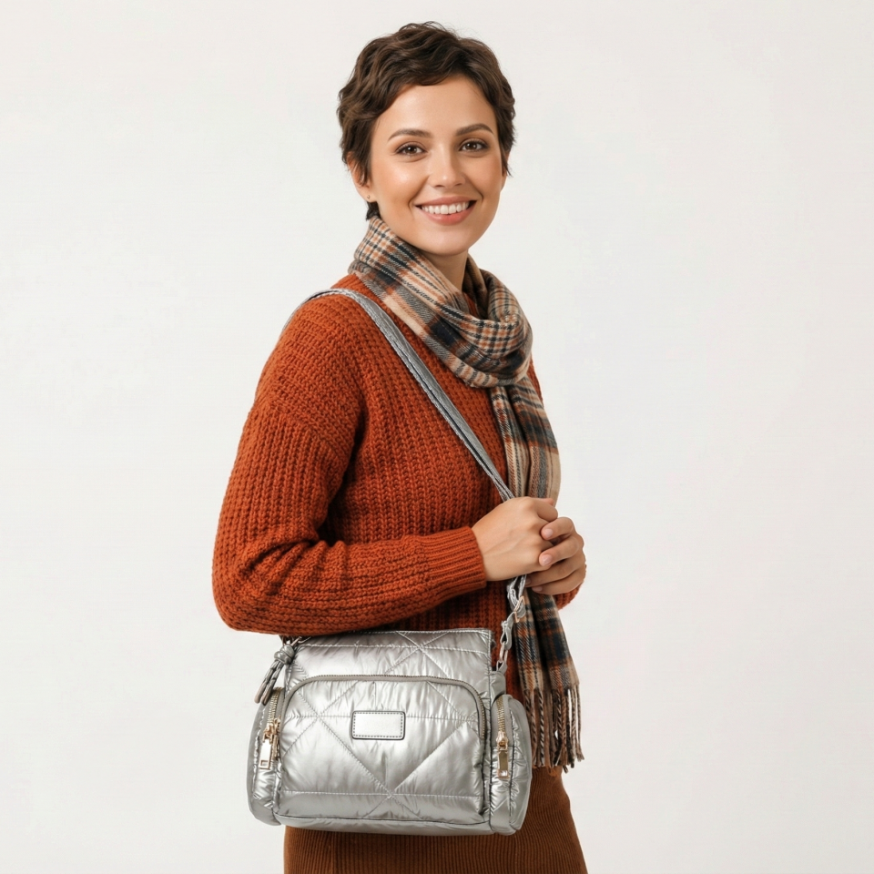 Quilted and Padded Polyamide Fabric Crossbody Bag # 24022