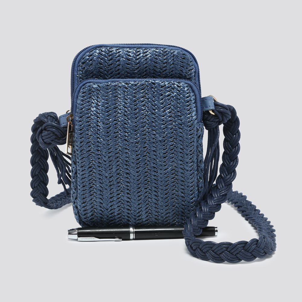 Capture the essence of summer freedom with this charming blue woven crossbody. Perfectly sized for your essentials, this mini bag combines a relaxed boho vibe with practical organization for a stylish, hands-free experience.