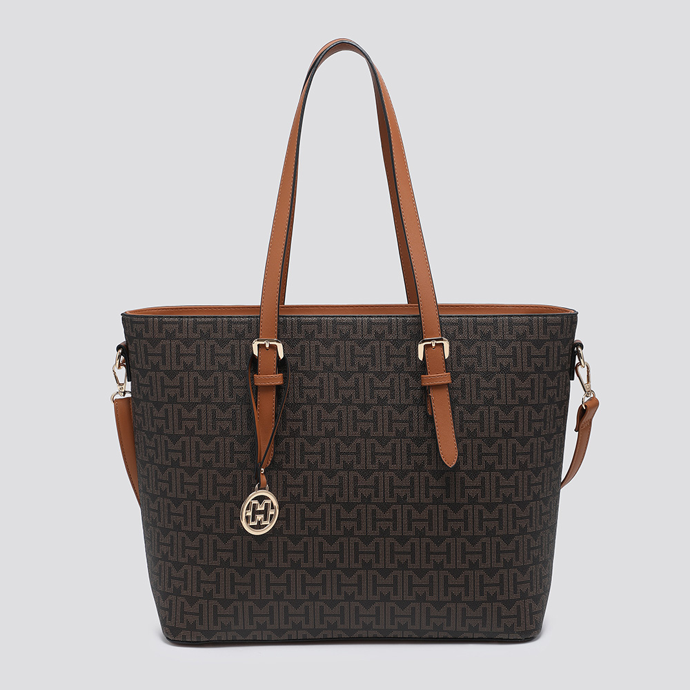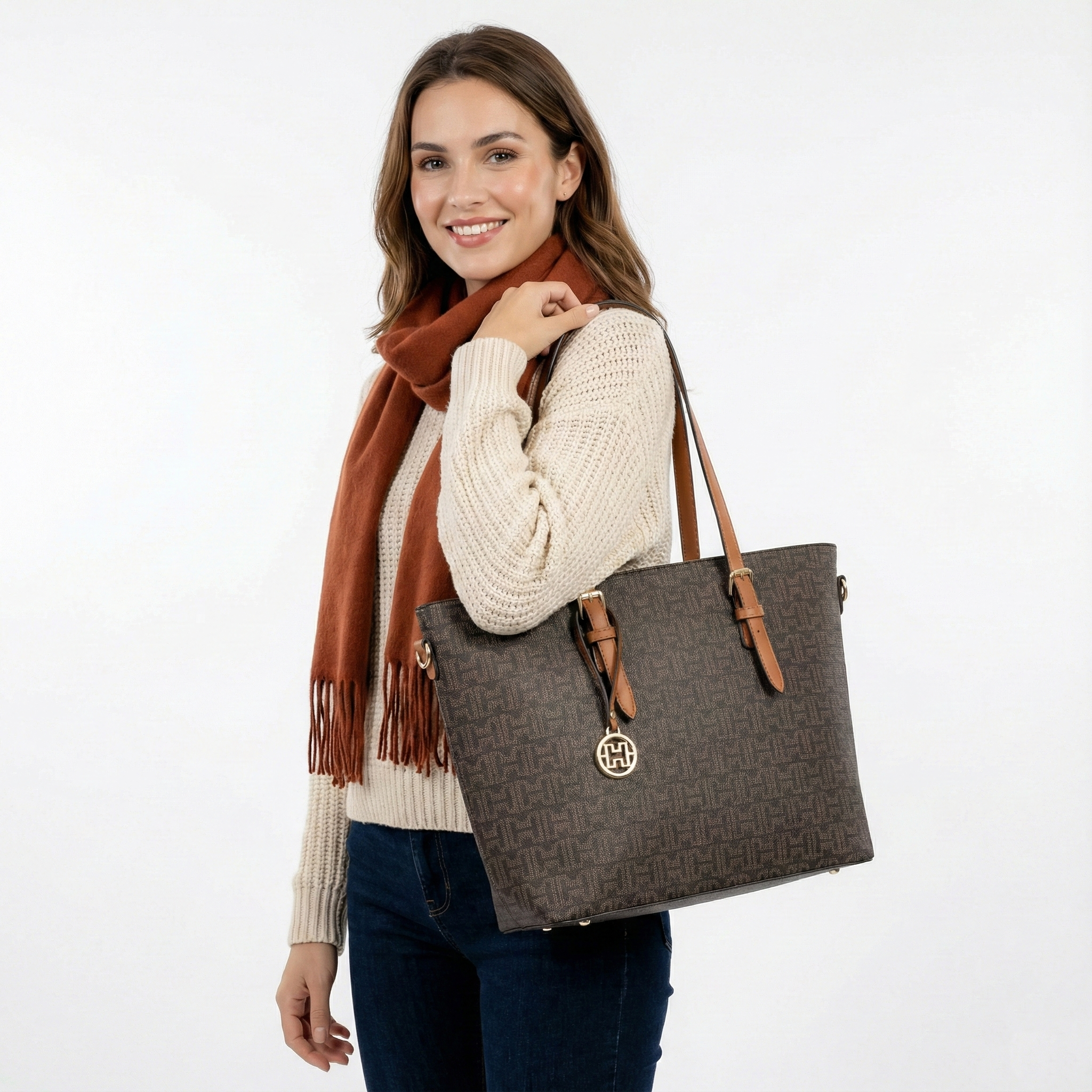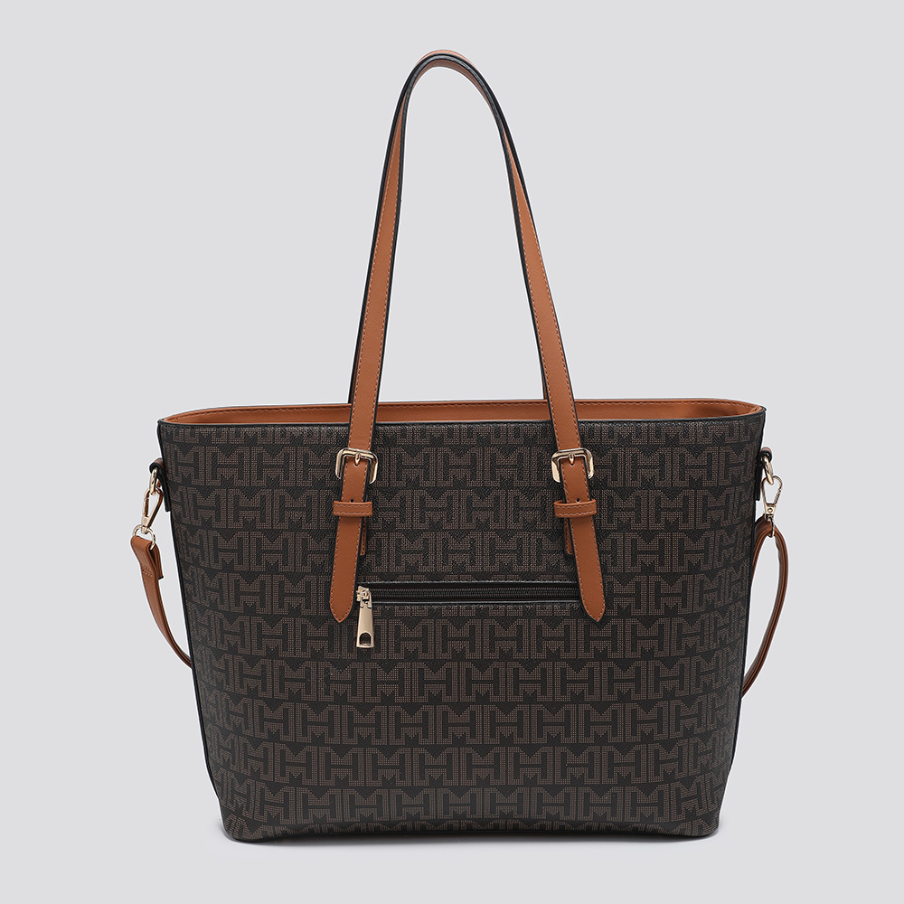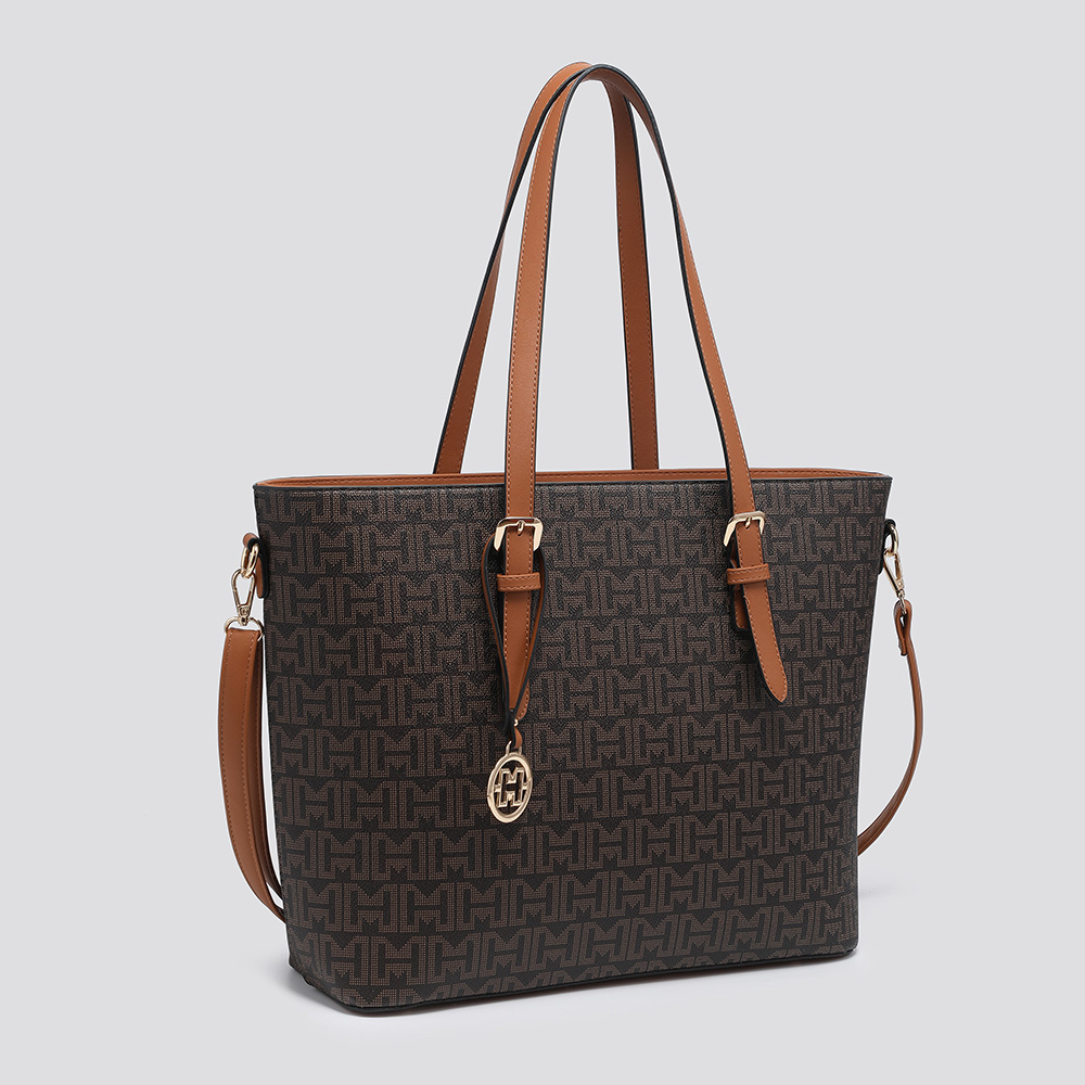 Exude sophistication with this classic monogram print tote. combining a timeless geometric pattern with rich, smooth trim, this spacious bag offers the high-end look of a designer piece with the practicality needed for your daily grind.
