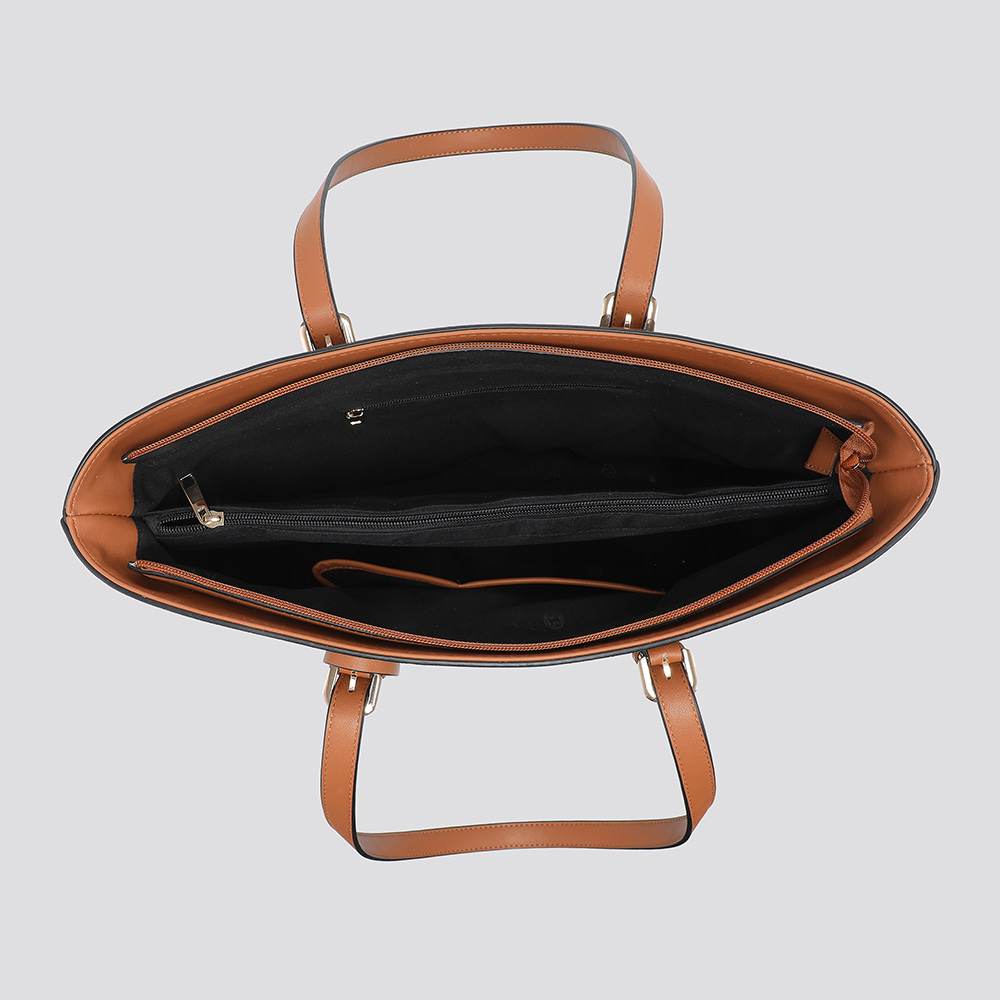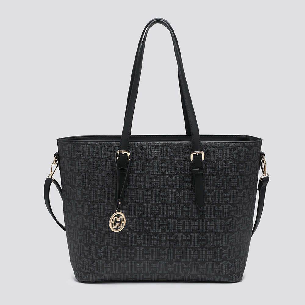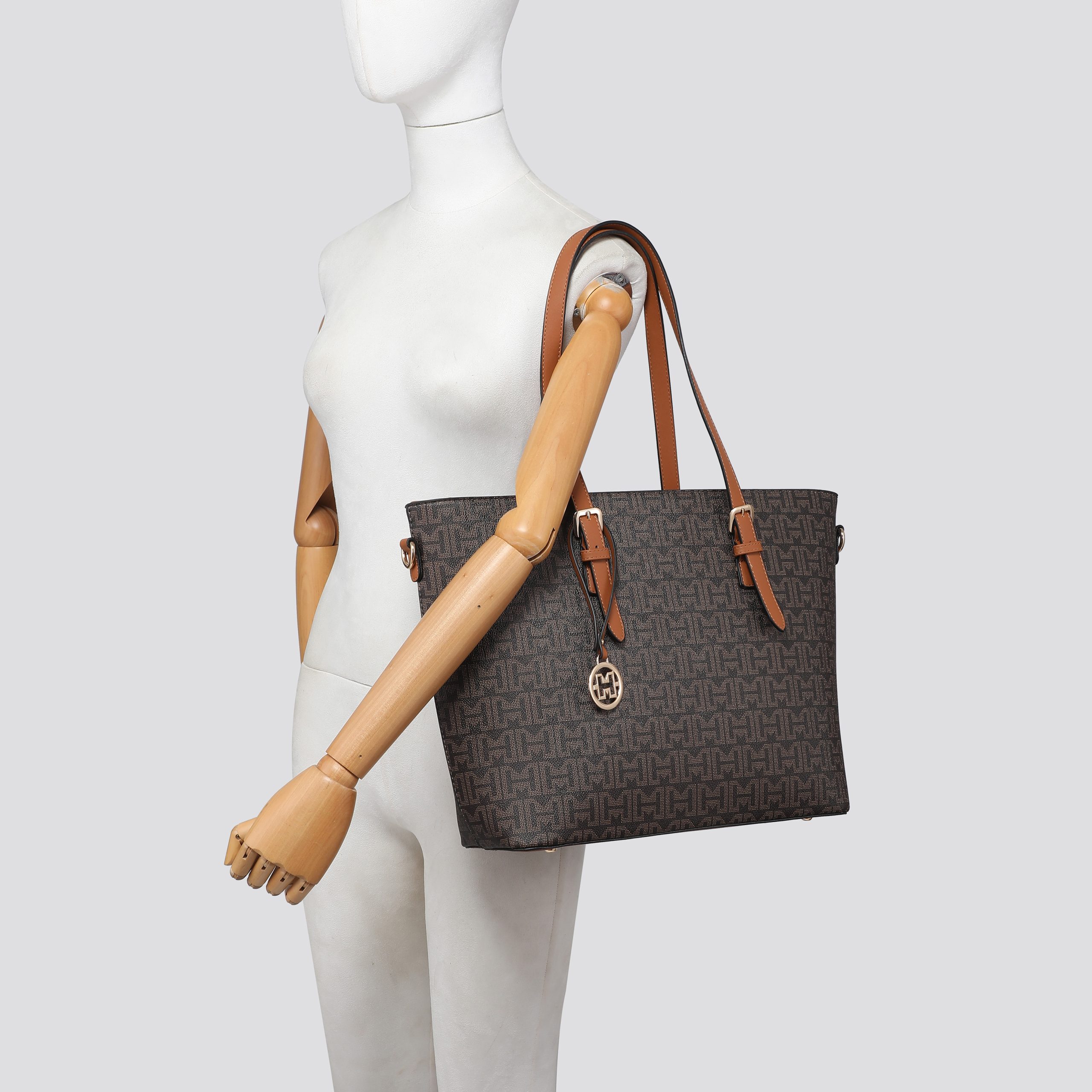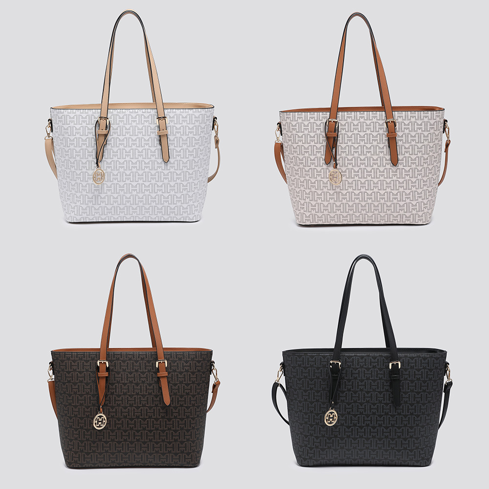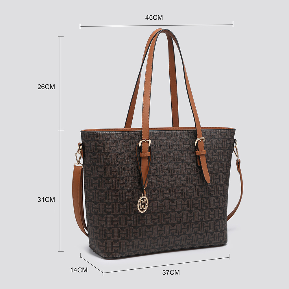 Exude sophistication with this classic monogram print tote. combining a timeless geometric pattern with rich, smooth trim, this spacious bag offers the high-end look of a designer piece with the practicality needed for your daily grind.