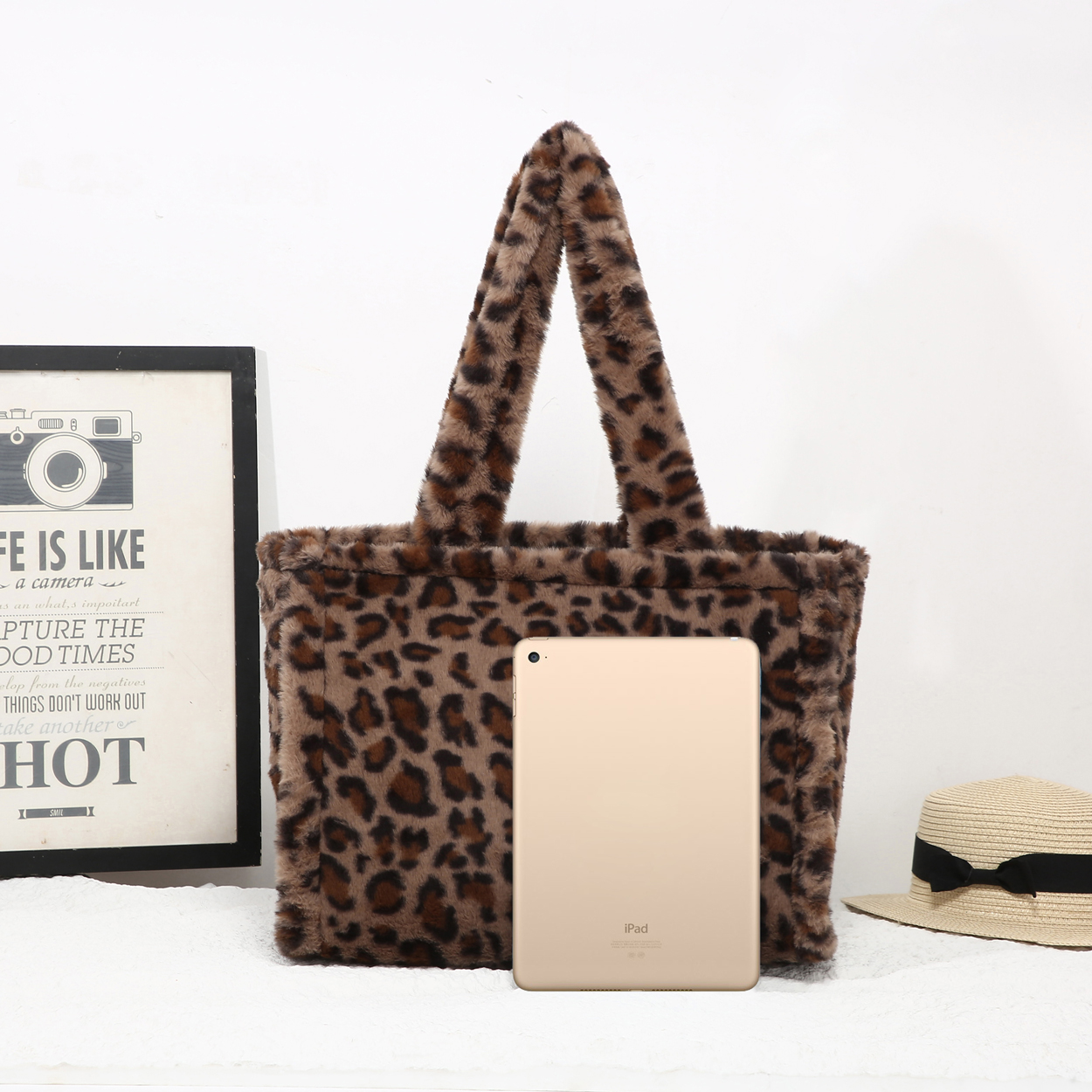 Crafted with attention to comfort and detail, this tote features a soft faux fur body with an integrated strap-handle design. Its spacious interior keeps your daily essentials within easy reach, while the leopard print pattern gives it a chic and modern edge.