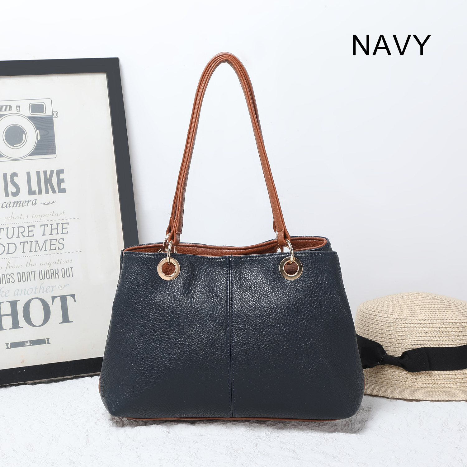 The color combination is earthy and versatile, perfect for transitional seasons. The triple-compartment layout is a lifesaver for keeping your belongings separated—no more digging for your keys at the bottom of a dark bag.