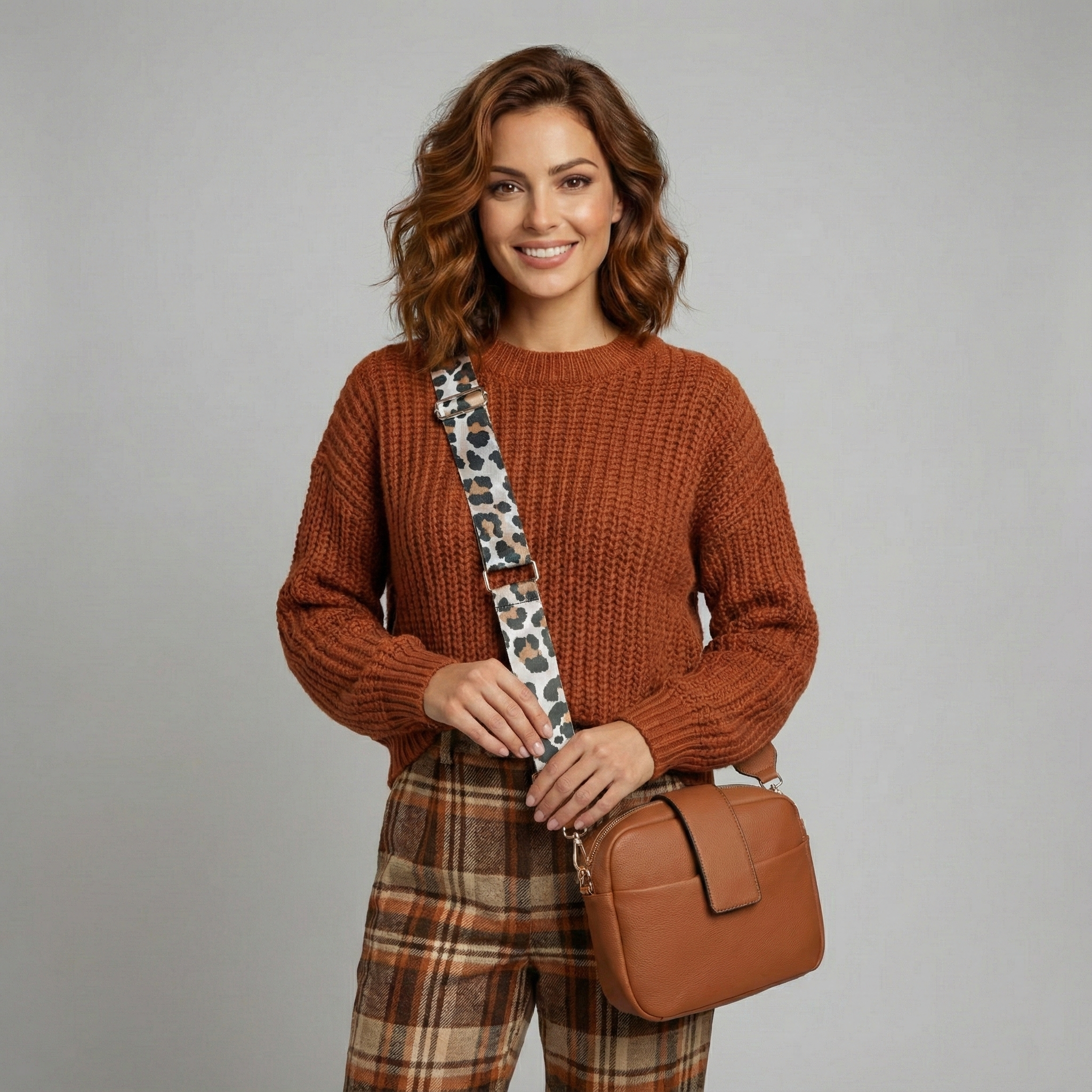 It’s an instant outfit updater. The bold animal print strap transforms a simple brown bag into a statement piece. The boxy shape is deceptively spacious, fitting your phone, wallet, keys, and cosmetics with ease, while the front tab adds a polished finishing touch.