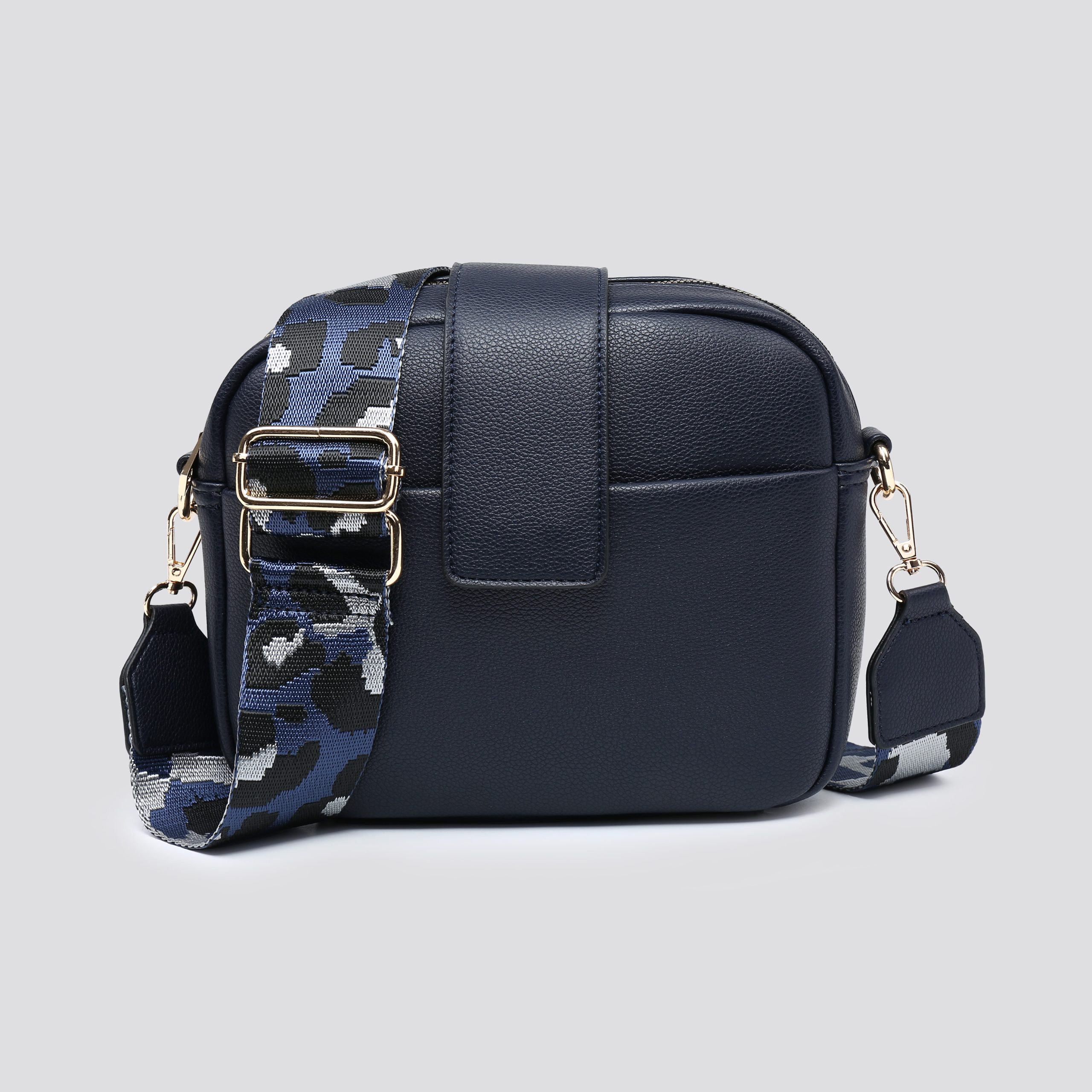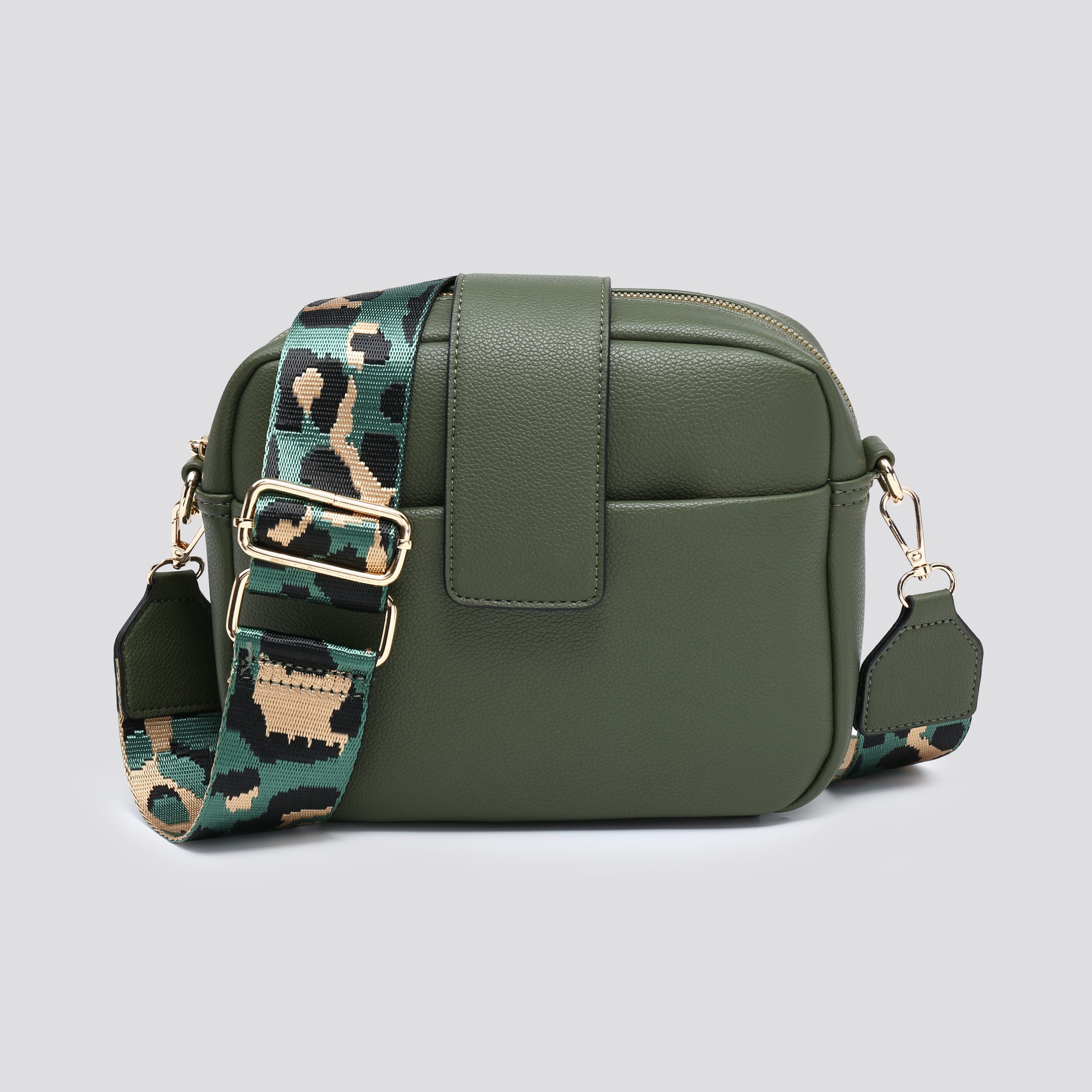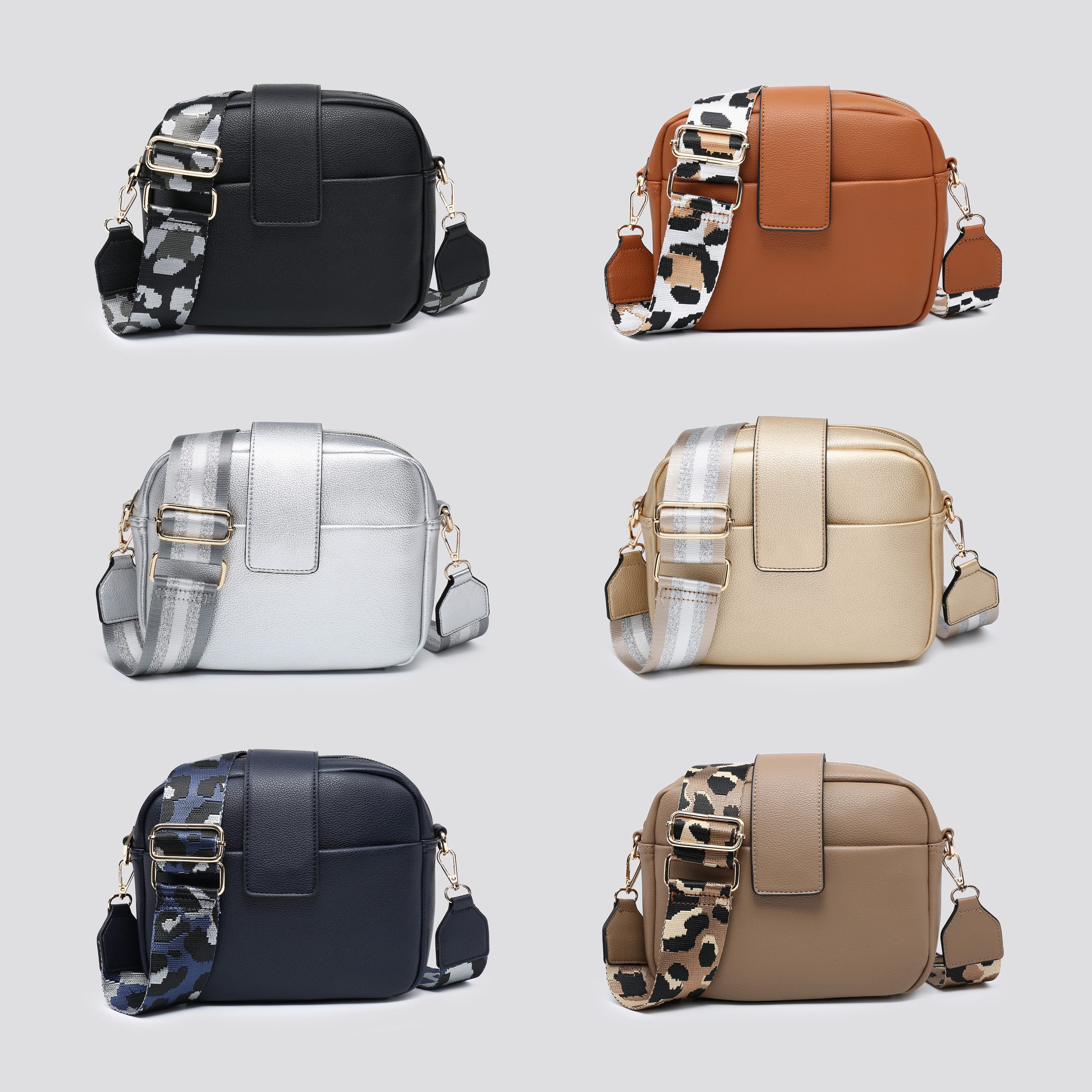 Unleash your wild side with this trendy faux leather crossbody bag. Defined by its statement leopard print “guitar-style” strap, this boxy camera bag adds a bold, fashion-forward edge to a classic everyday silhouette.