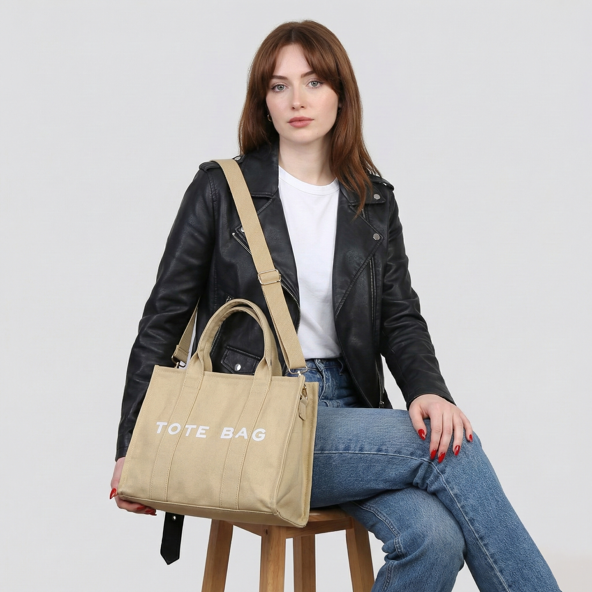 Master the art of casual chic with this structured canvas tote, a piece that perfectly marries utility with trend-focused design. Featuring bold typography and a robust silhouette, it is designed to handle your daily haul while keeping your look effortlessly on-trend.