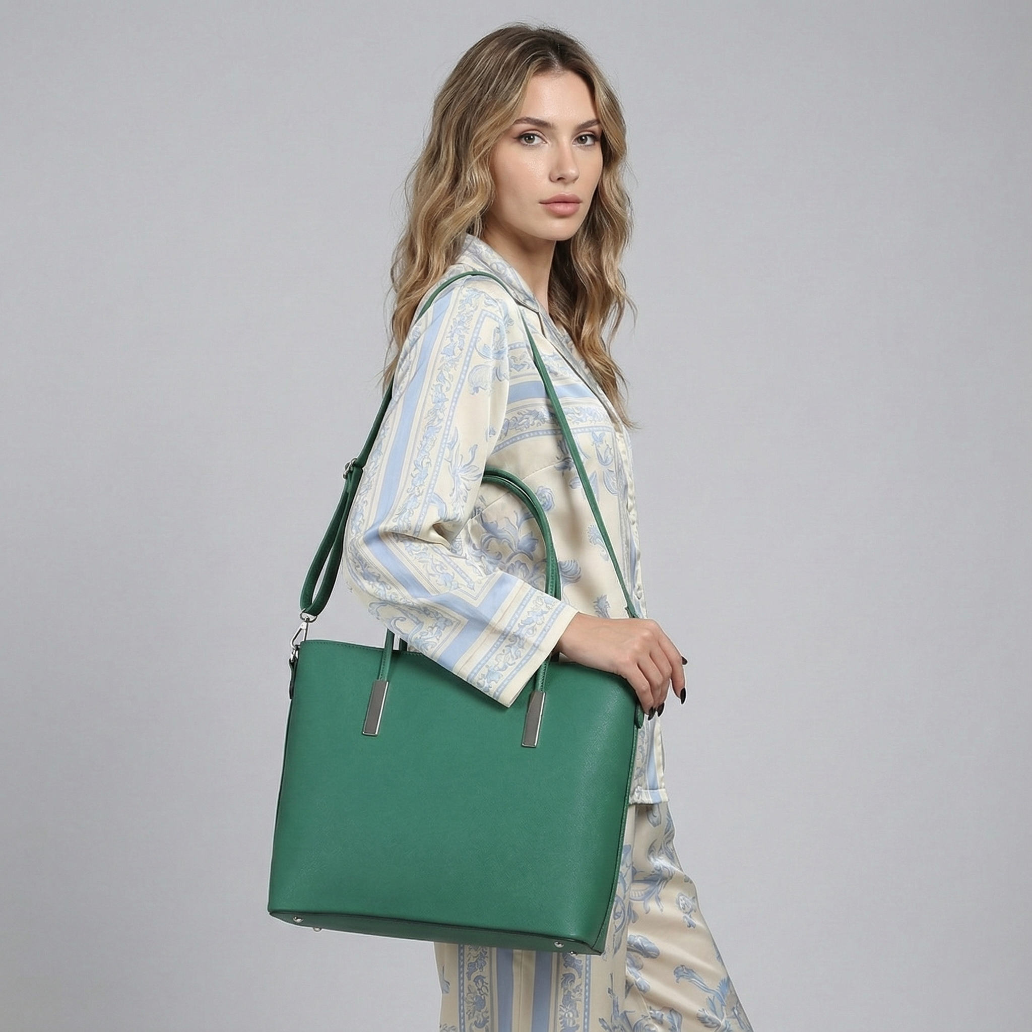 Transform your daily routine with this impeccably coordinated two-piece tote set, offering a polished solution for every occasion. Defined by a structured trapezoidal silhouette and sleek metallic accents, this duo ensures you always have the perfect size on hand, whether for a full day at the office or a light weekend outing.