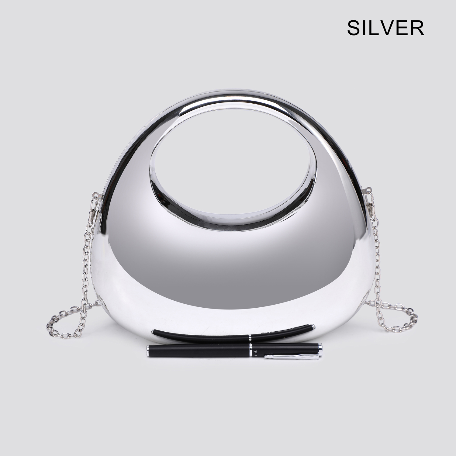 Material: High-quality acrylic body with metallic clasp and chain hardware