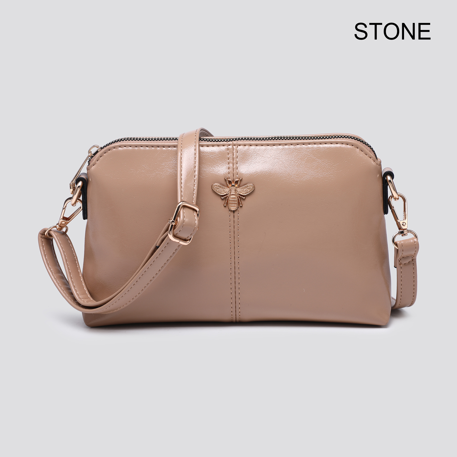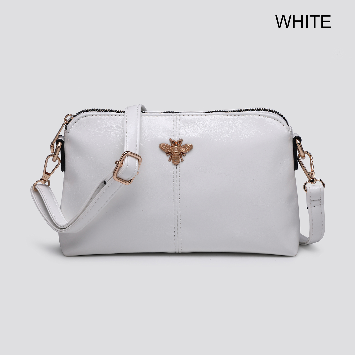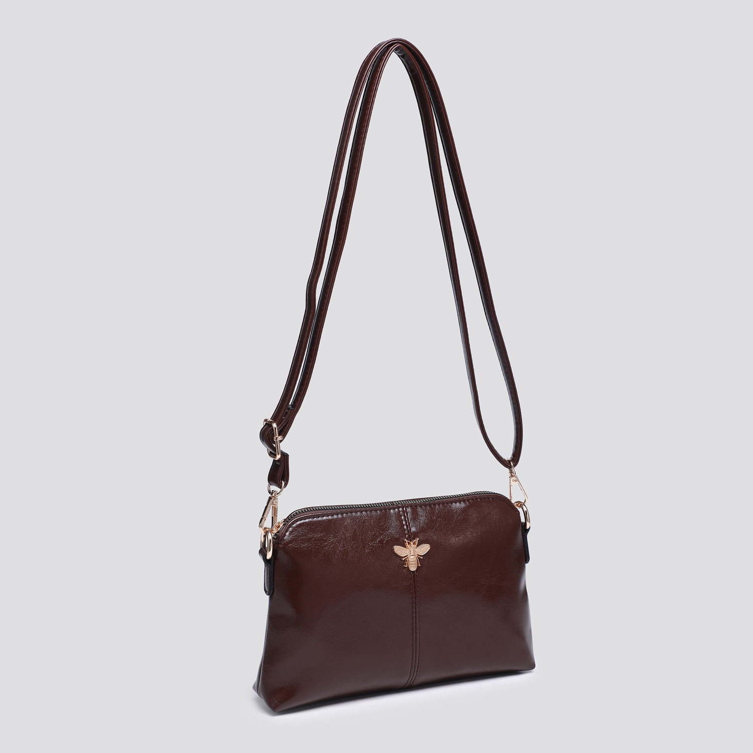 Stylish and refined, this faux leather crossbody bag features the signature bee logo that adds a hint of luxury to any outfit. With its sleek structure and smooth texture, it’s ideal for everyday wear or evening occasions.