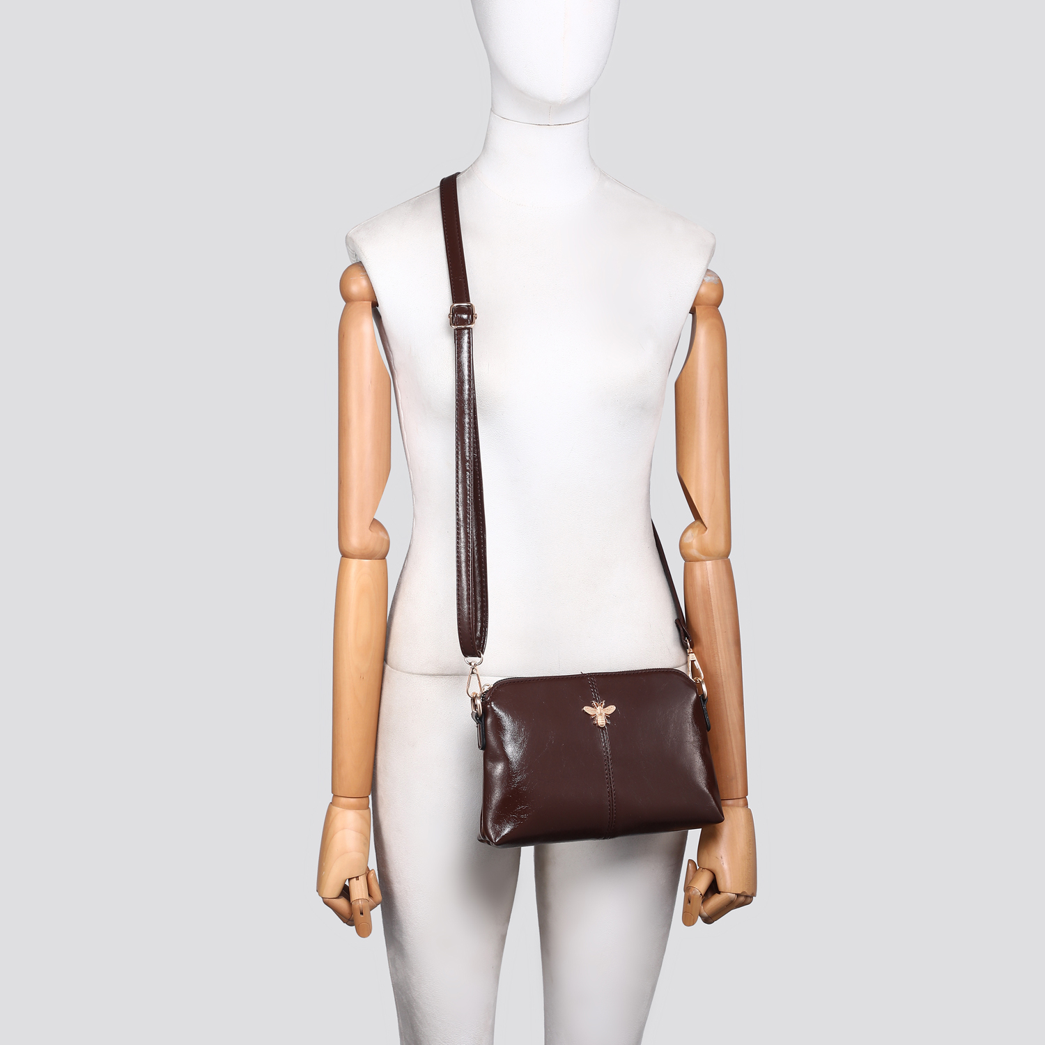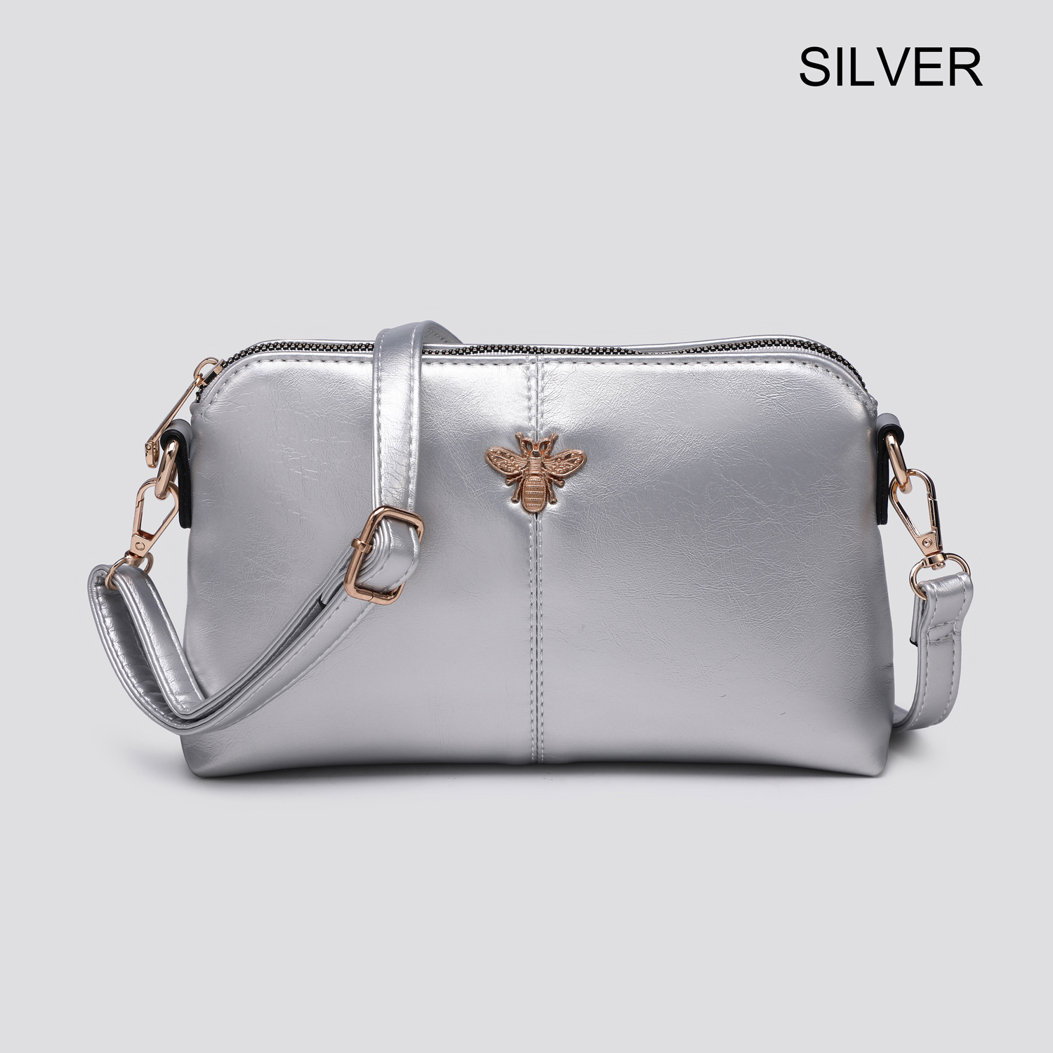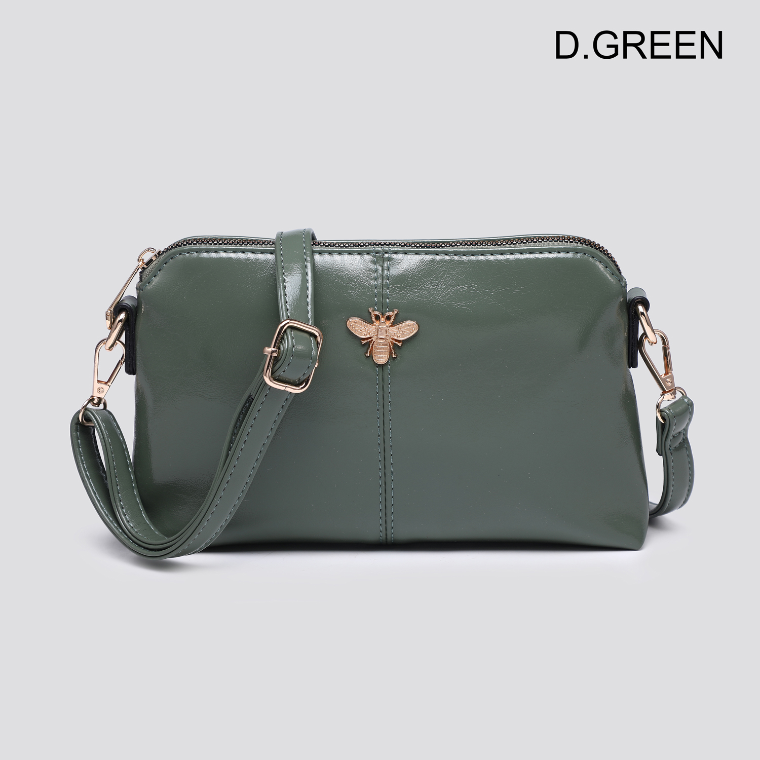 Stylish and refined, this faux leather crossbody bag features the signature bee logo that adds a hint of luxury to any outfit. With its sleek structure and smooth texture, it’s ideal for everyday wear or evening occasions.