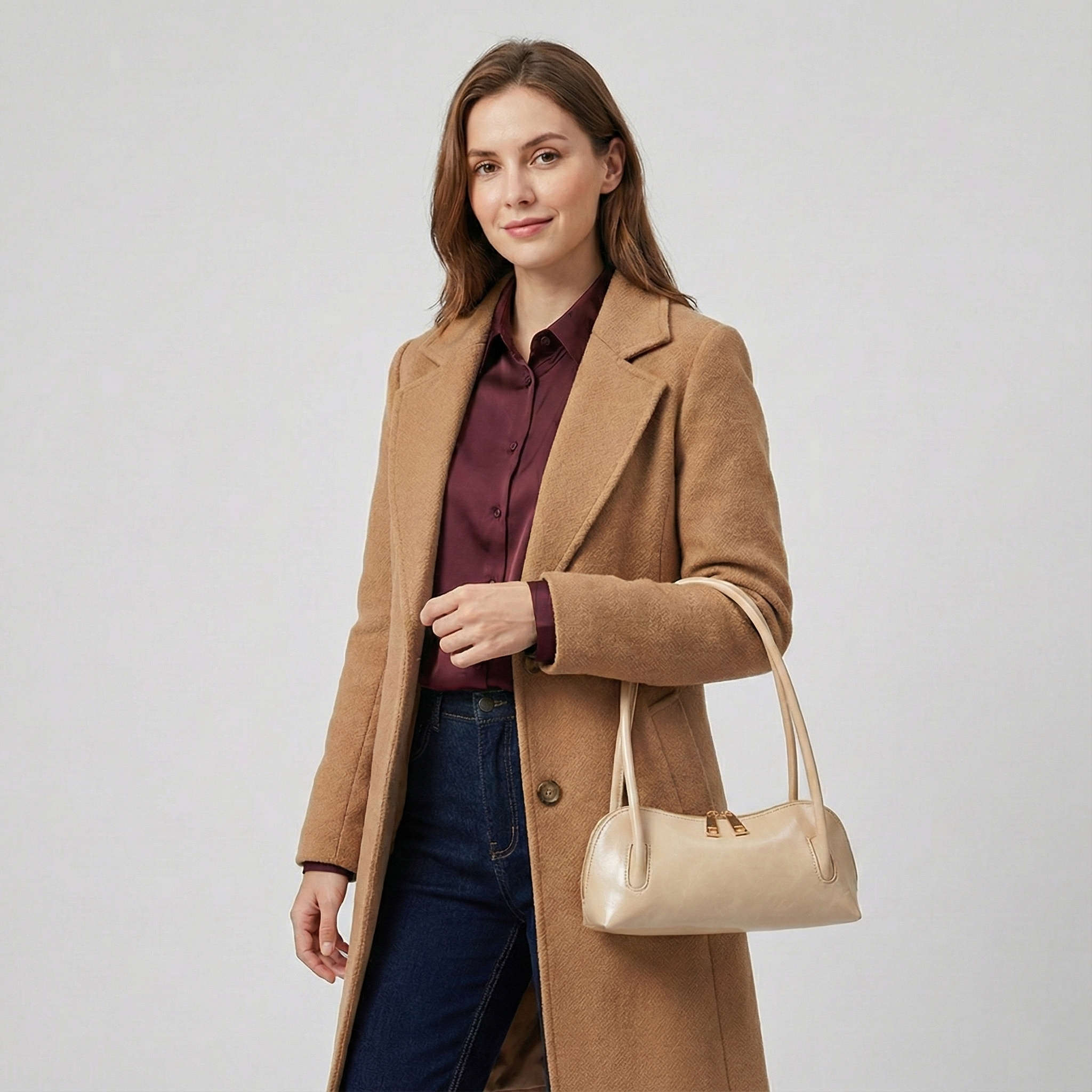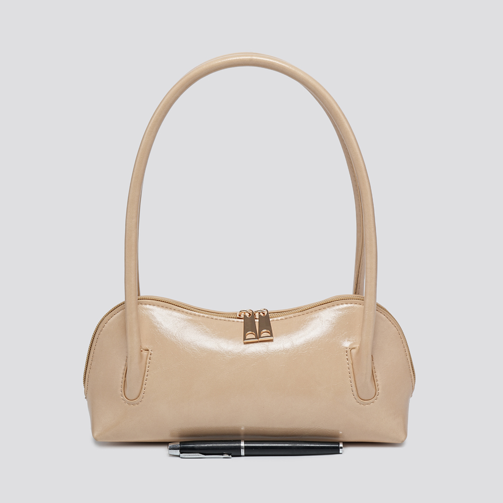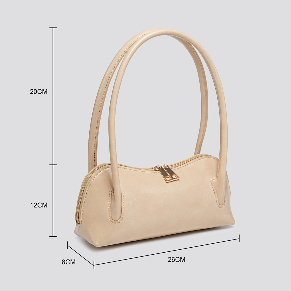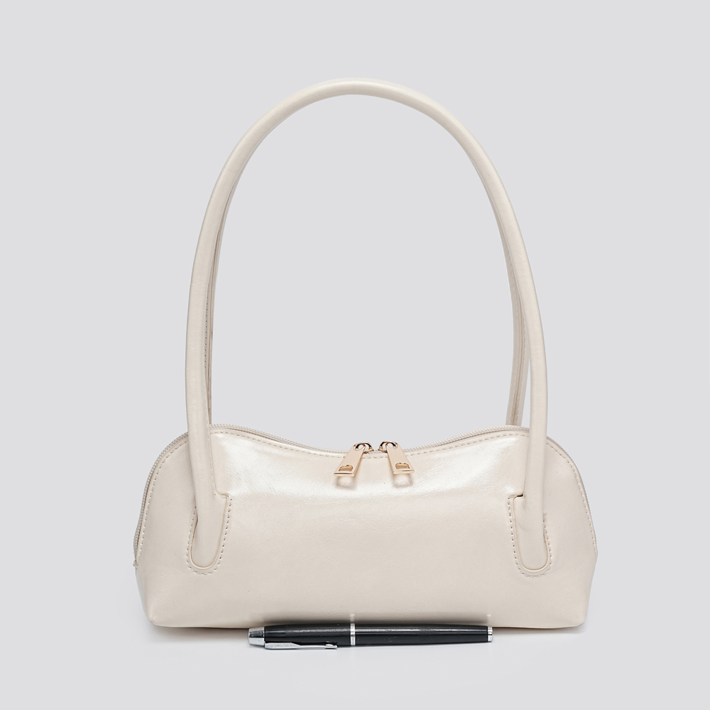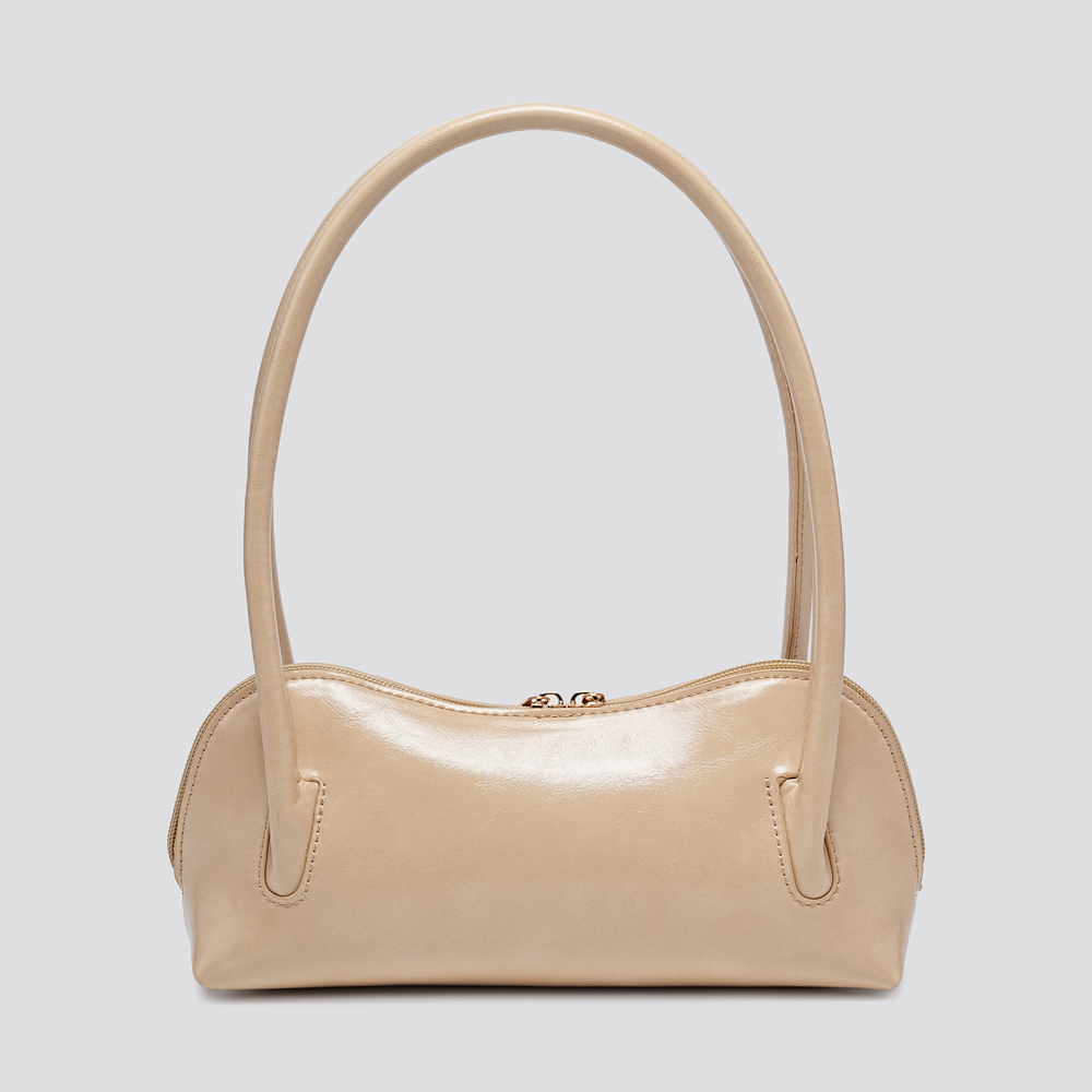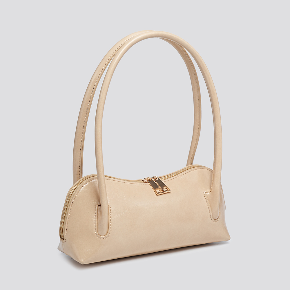 Embrace minimalist elegance with this chic, structured shoulder bag. Designed in a soft beige hue with clean lines and an elongated silhouette, this bag captures the essence of modern sophistication, making it the perfect understated accessory for any occasion.