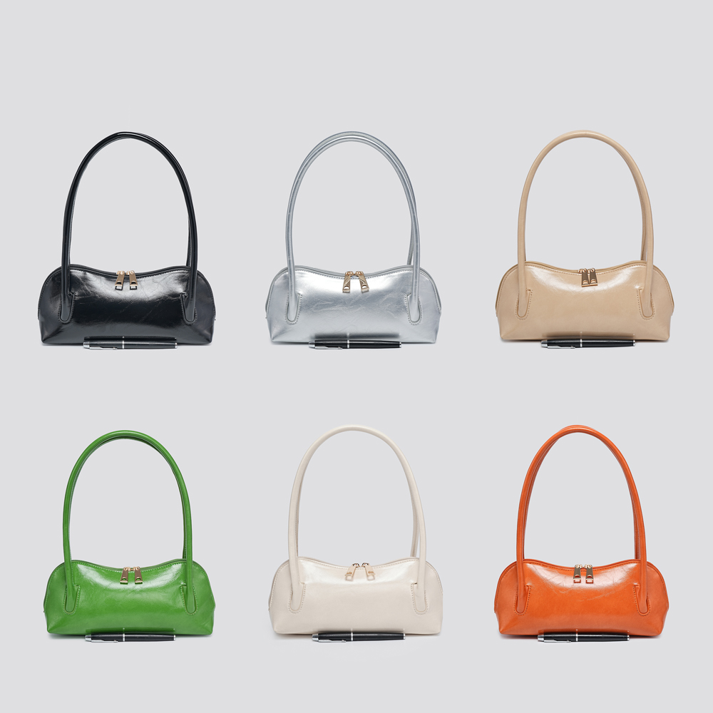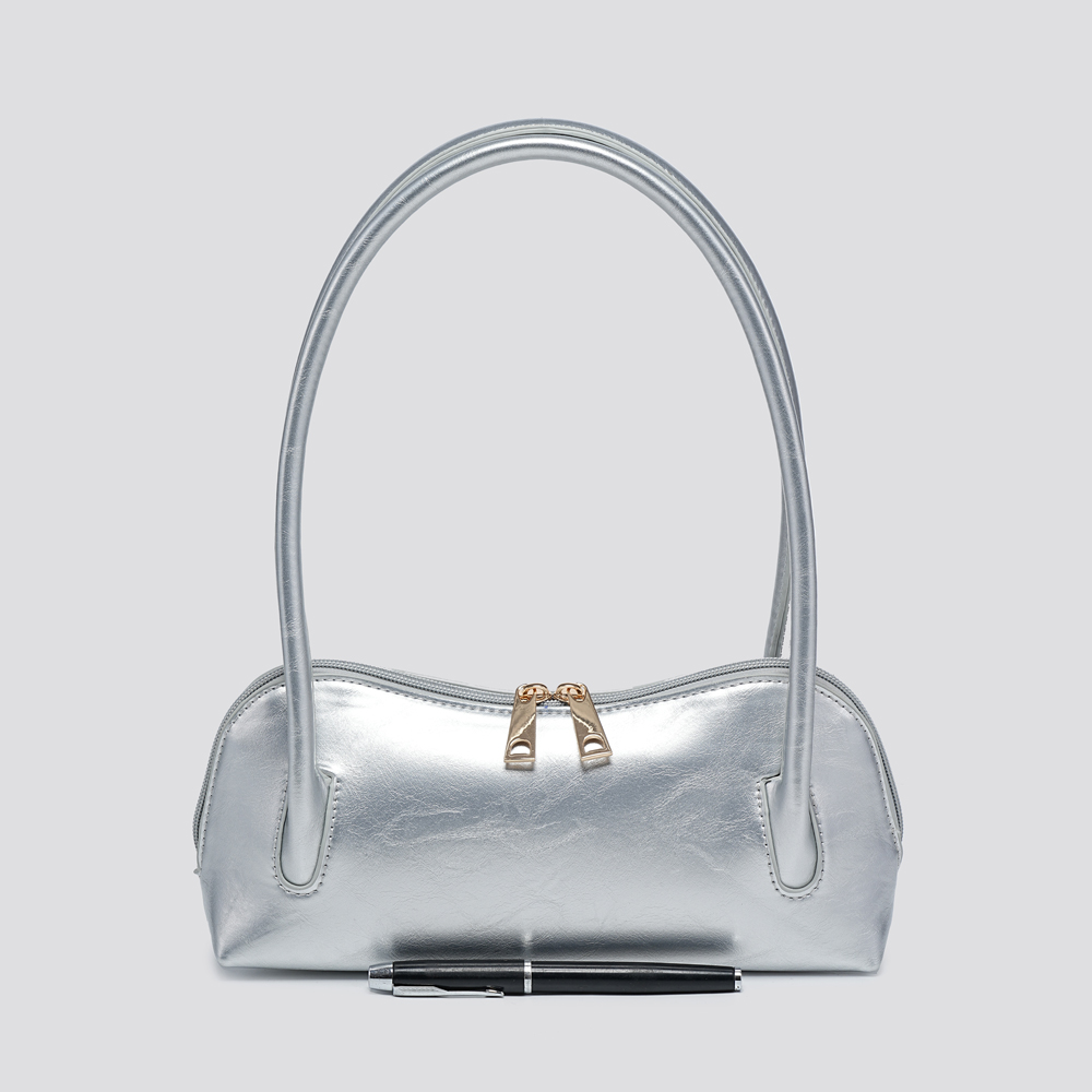 Designed with fixed dual shoulder handles that have a generous 20 cm drop, allowing the bag to sit comfortably under your arm for a classic 90s-inspired look.