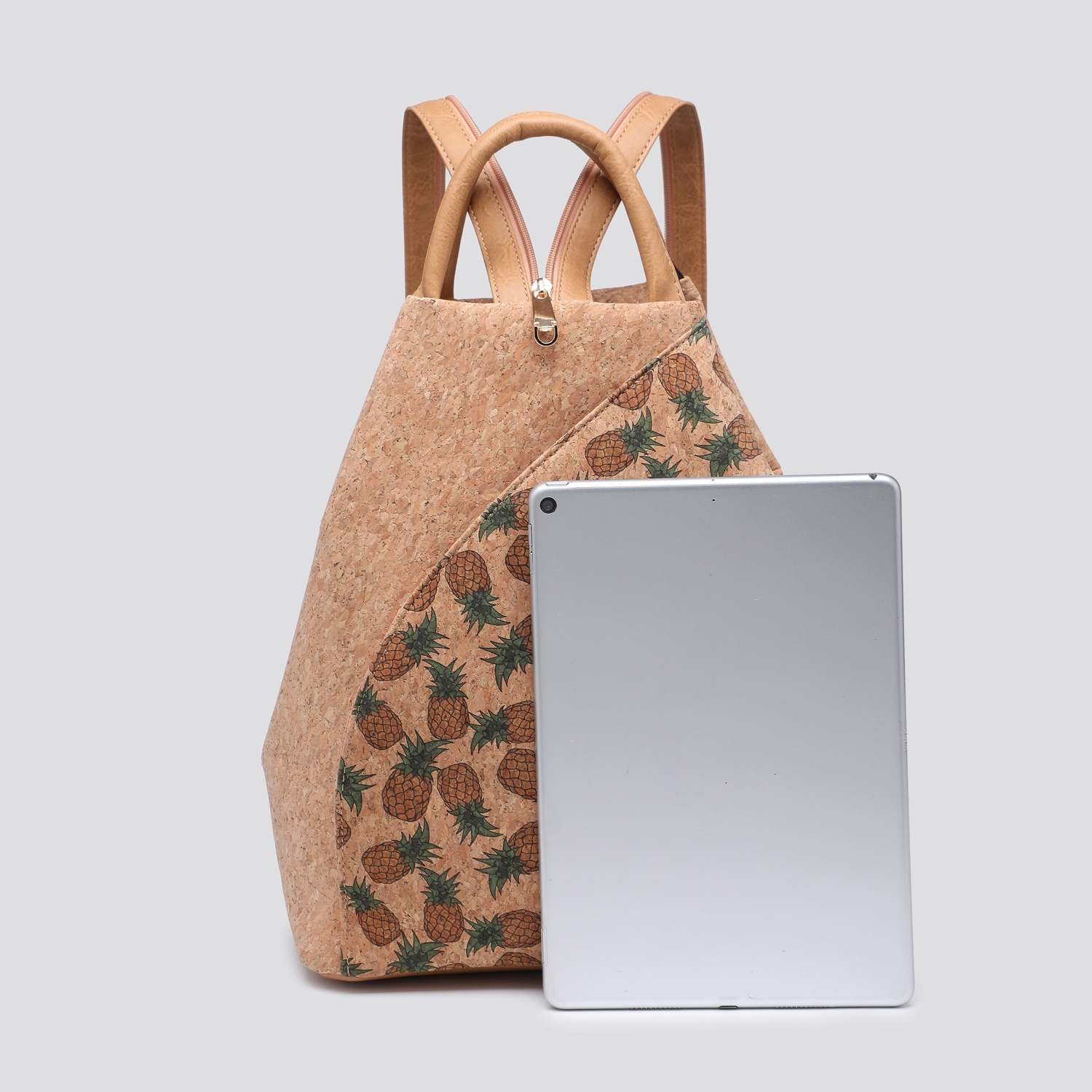 Step into the season with a uniquely structured backpack that effortlessly merges a playful tropical motif with innovative design. Crafted to provide peace of mind while on the move, its distinct tapered silhouette offers a fresh, textured take on your everyday carry.