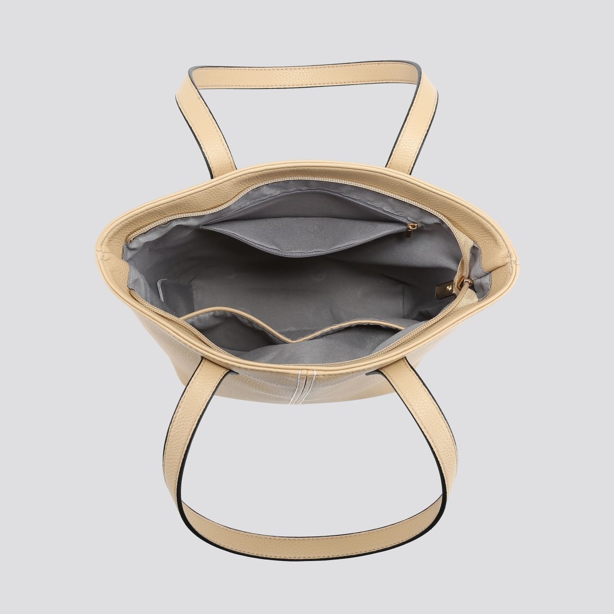 This tote merges a minimalist, structured silhouette with maximalist organization. The triple-compartment interior ensures you never have to dig for your keys or phone again, offering peace of mind in a beautifully tailored package.