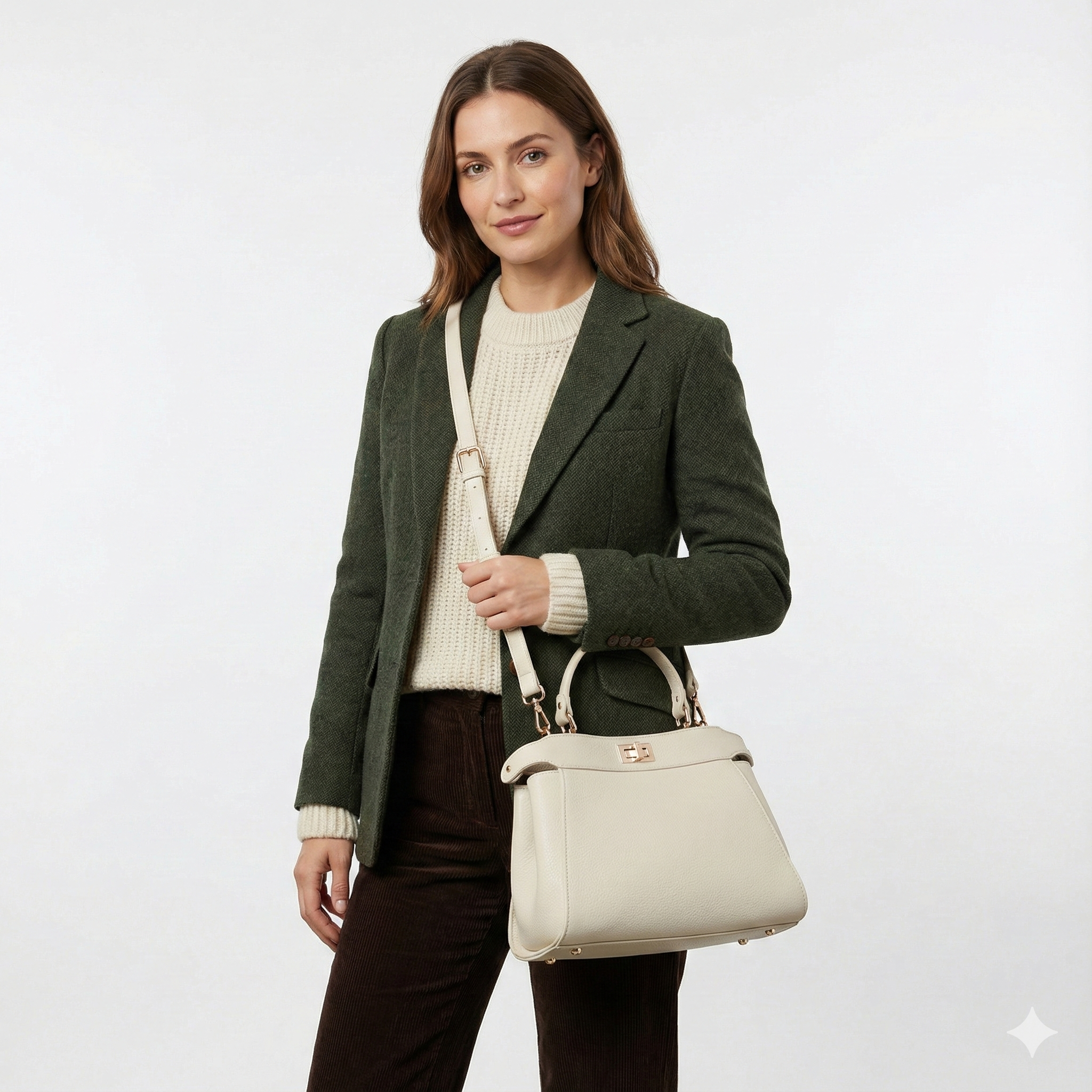 It looks and feels far more expensive than it is. The structured shape gives every outfit an instant polish, effectively turning a casual jeans-and-blazer look into a “power outfit.” The turn-lock closure adds a classic, high-end touch.