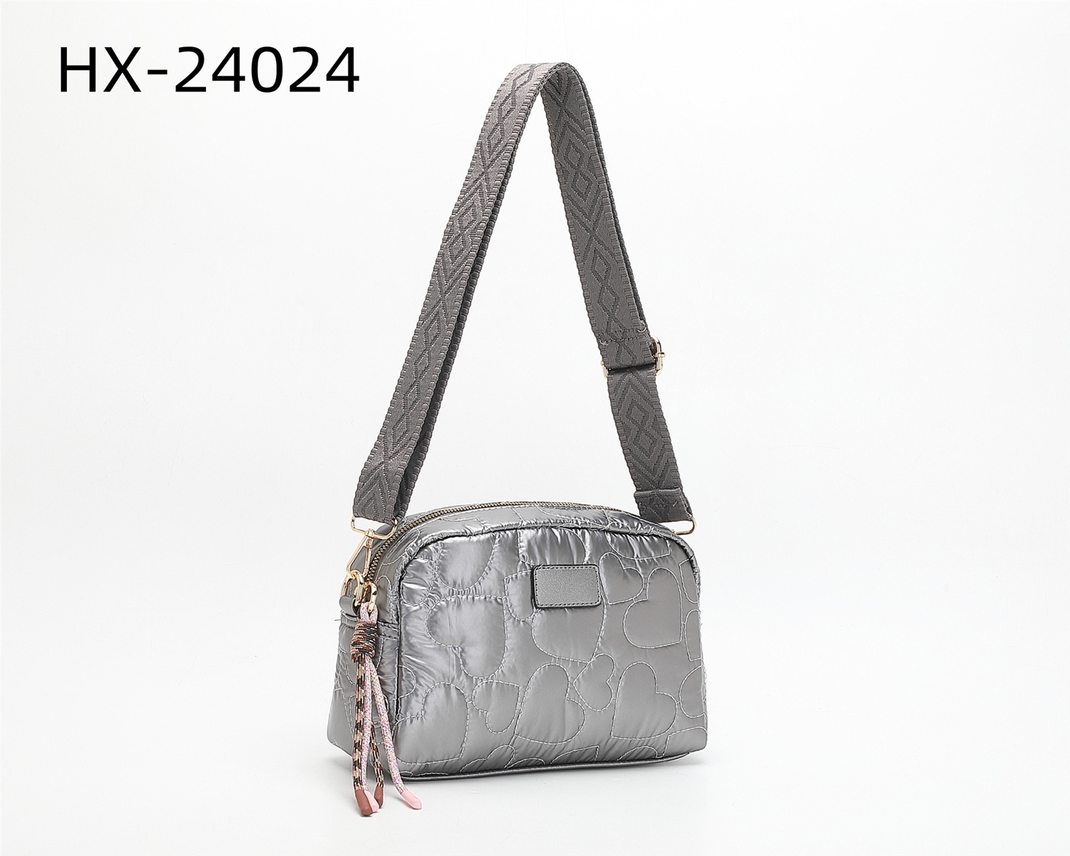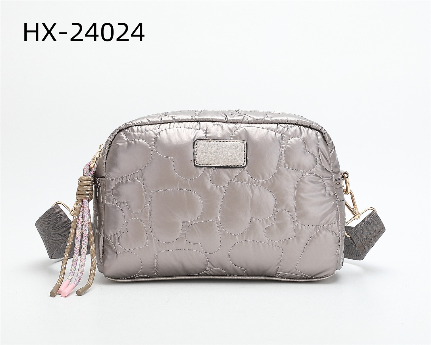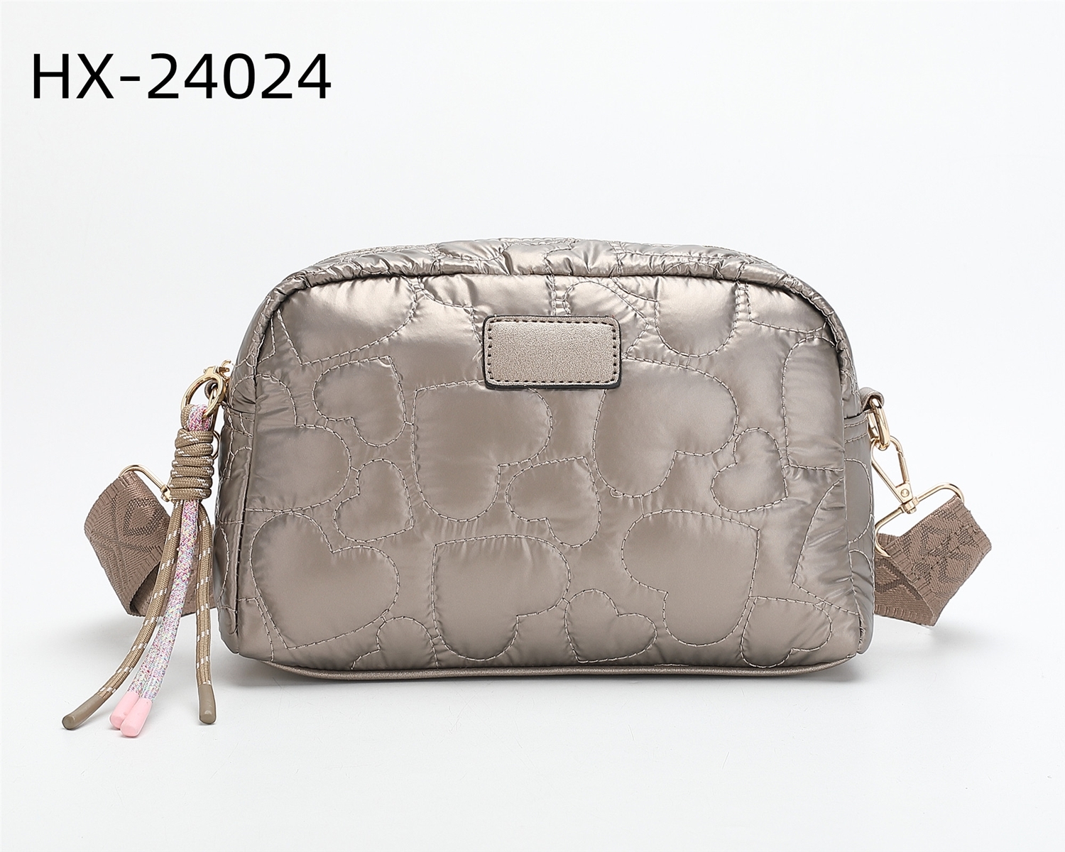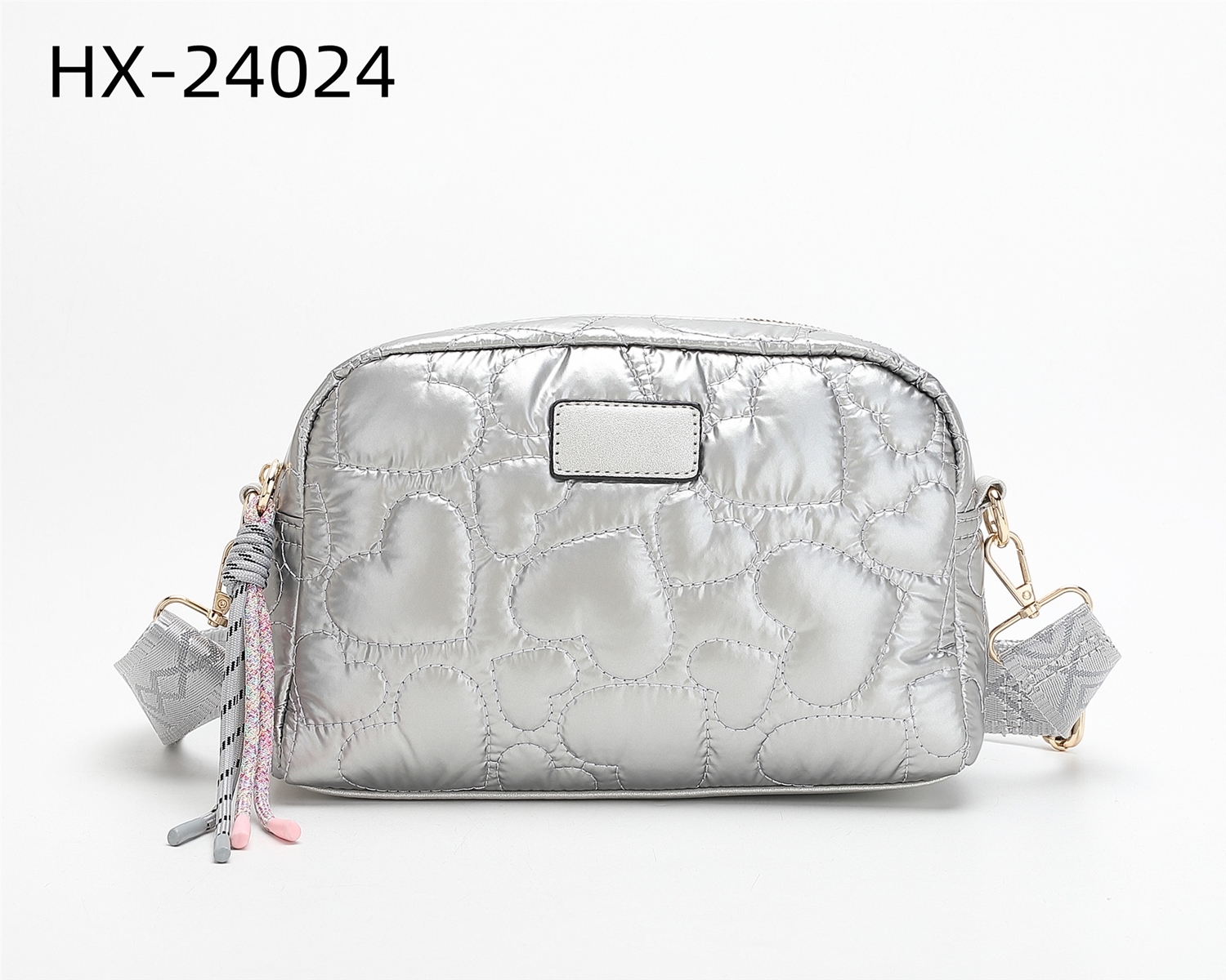 Add a touch of shimmer to your everyday ensemble with this compact metallic crossbody. Featuring a trendy heart-quilted design and a sporty wide strap, it offers the perfect balance of fashion-forward aesthetics and on-the-go functionality.