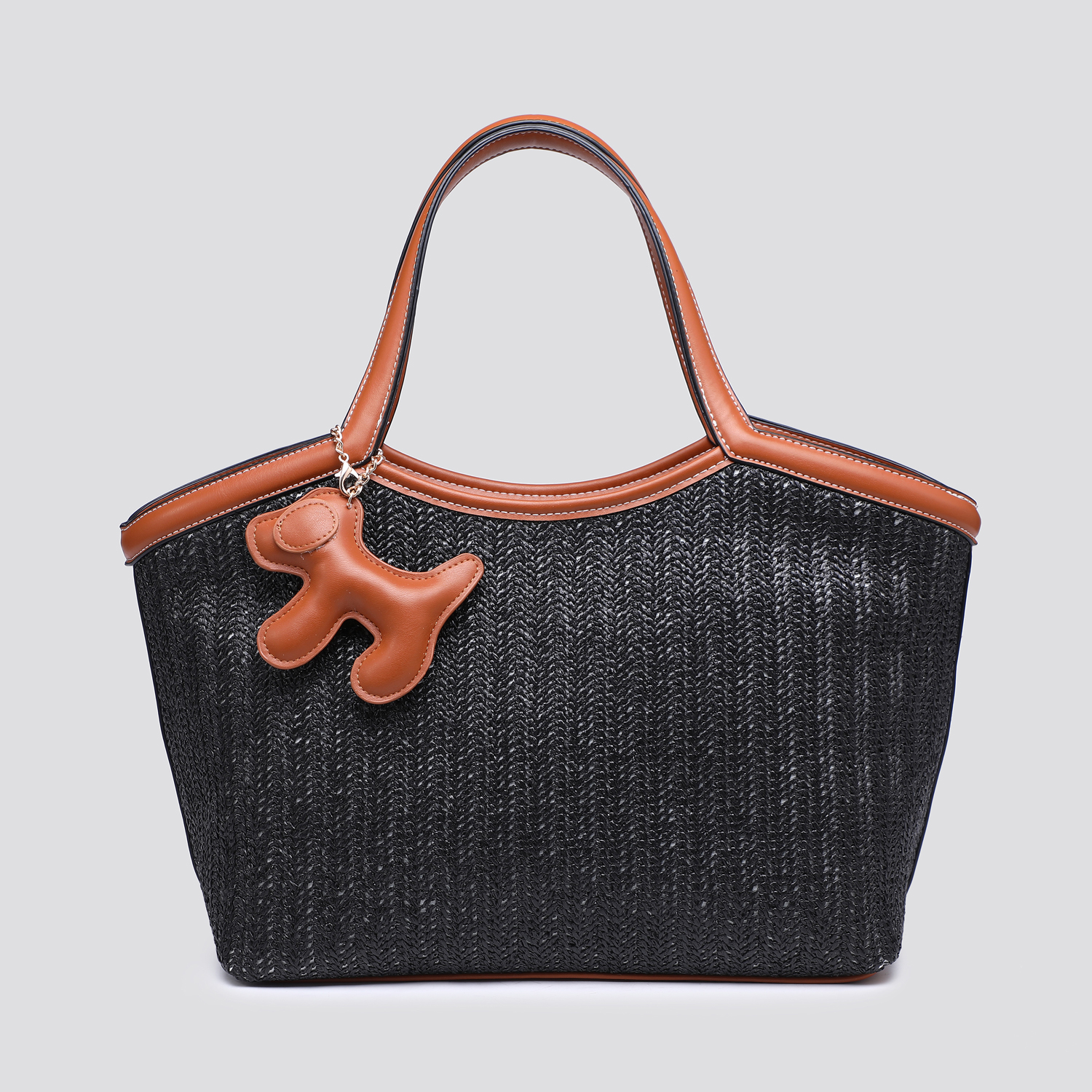 To keep the woven texture looking its best, gently dust the exterior with a soft-bristled brush or dry cloth. Wipe the smooth trim with a slightly damp cloth to remove any surface dirt. Store the bag in a cool, dry place to maintain its shape.