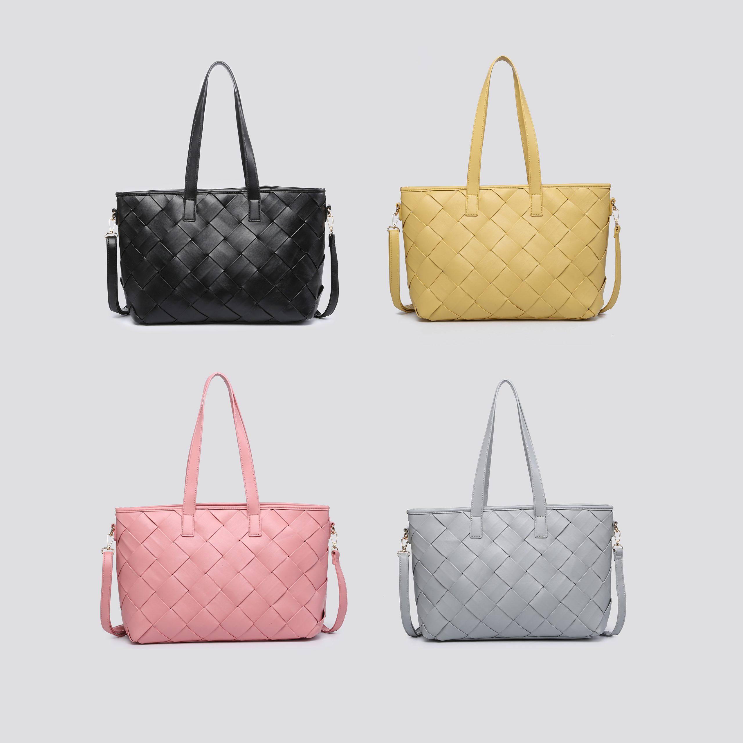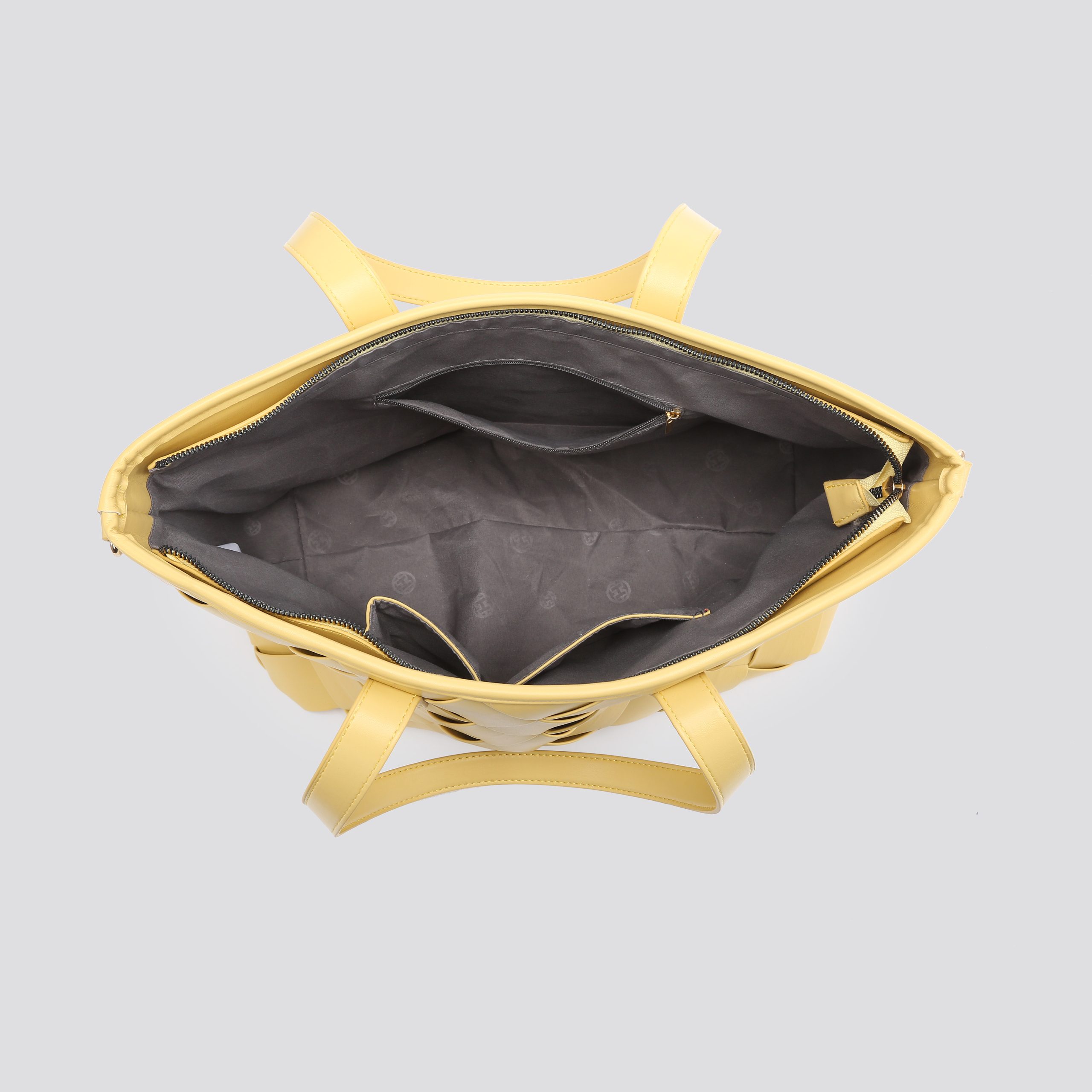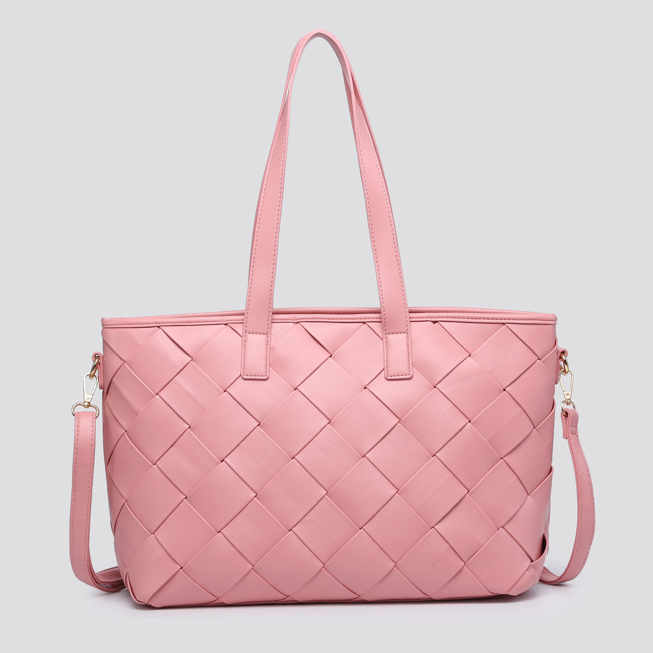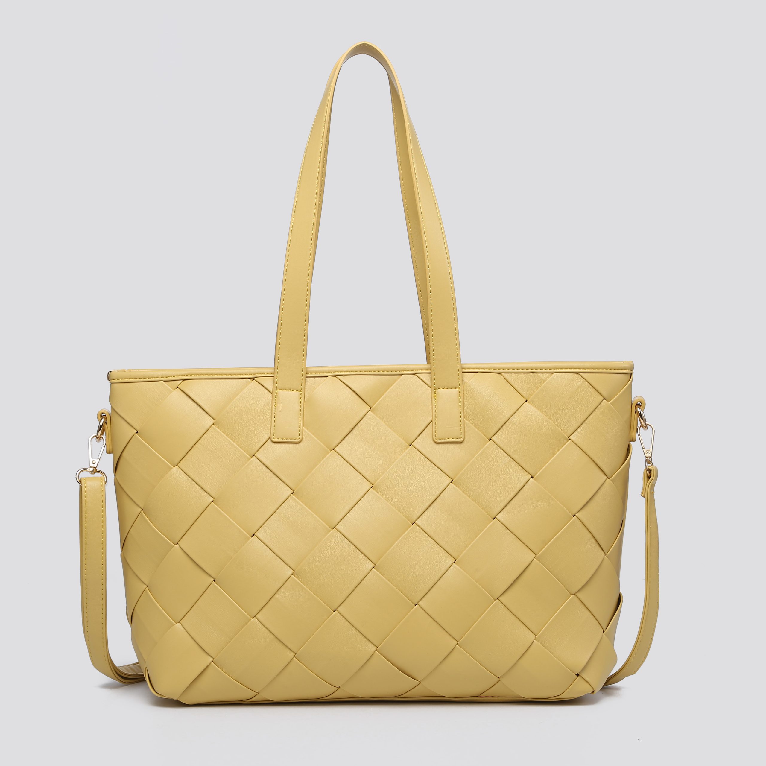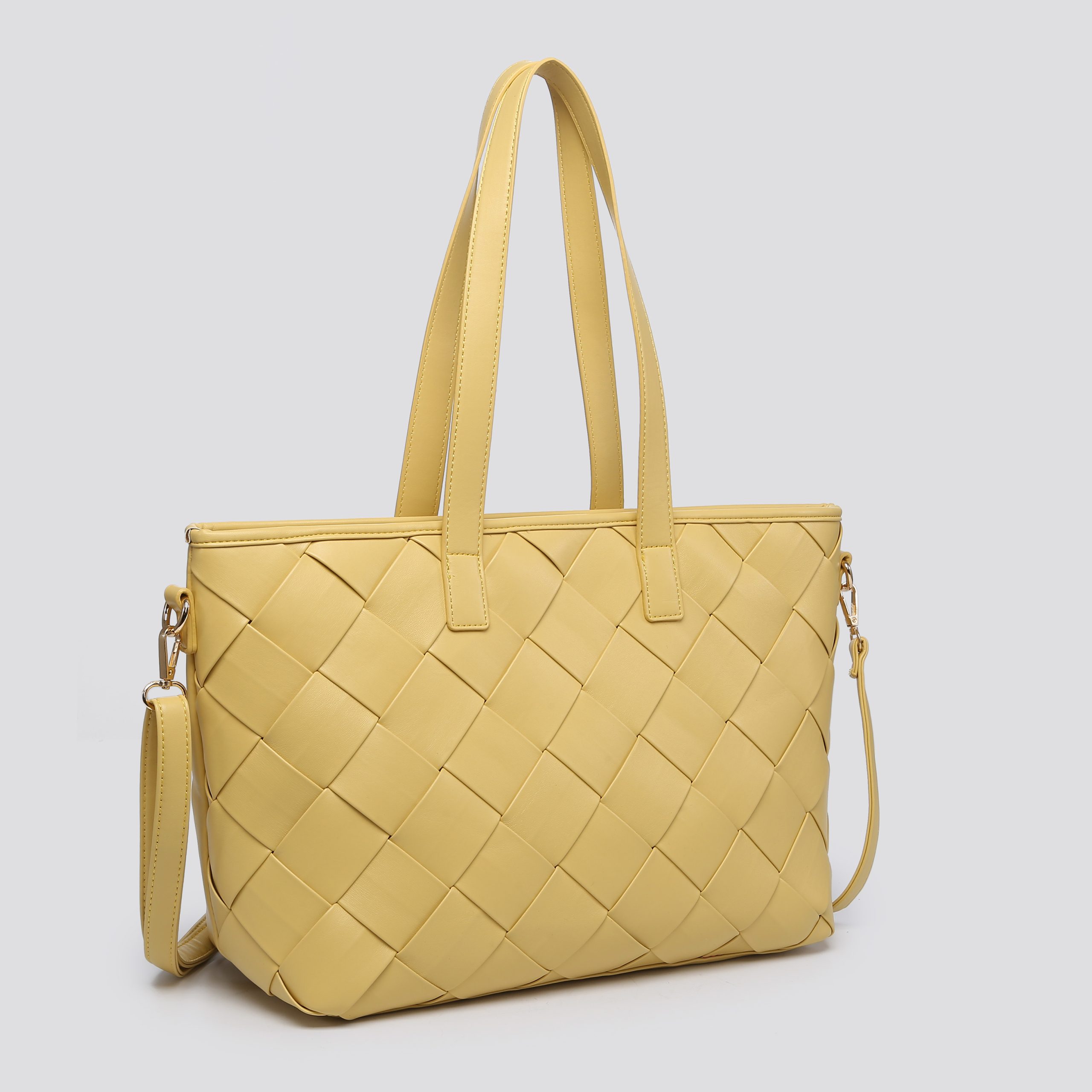 Elevate your everyday style with this sophisticated tote, defined by its intricate, wide-woven texture. The interlaced design adds a layer of artisanal depth to the smooth, structured silhouette, making it a standout piece that feels both modern and timeless. Spacious and refined, this accessory is perfectly sized to carry your daily world with effortless elegance.