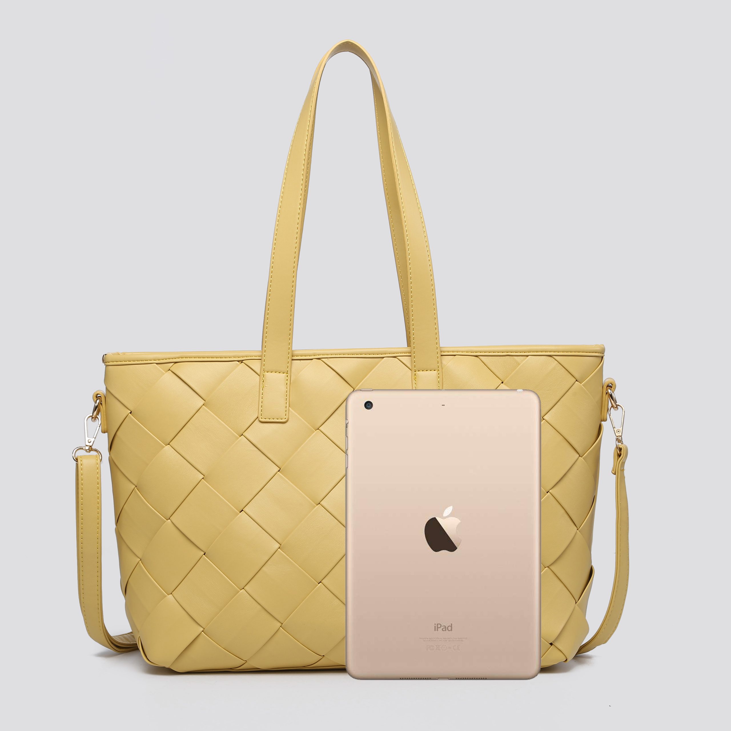 You will love the “bottega” inspired aesthetic that brings high-fashion texture to a practical, everyday bag. The wide woven strips create a visual richness that elevates even a simple t-shirt and jeans. It is large enough to hold a tablet, notebook, and water bottle, making it an ideal choice for the office or a busy day of errands.