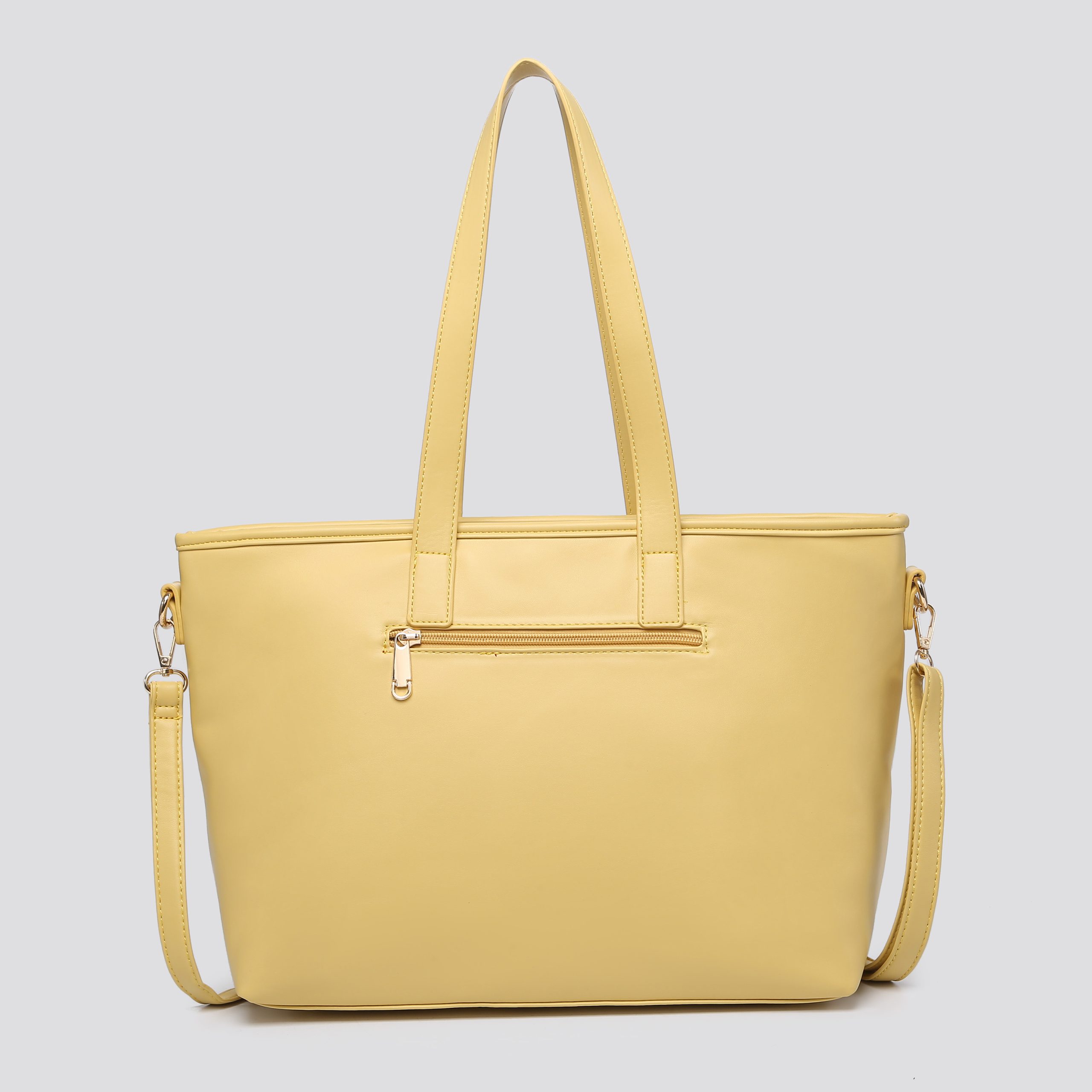 This tote is equipped with dual flat shoulder handles featuring a comfortable 25cm drop, perfect for tucking under the arm. For added versatility, it includes a detachable and adjustable long shoulder strap, allowing you to wear it crossbody or over the shoulder for hands-free convenience.